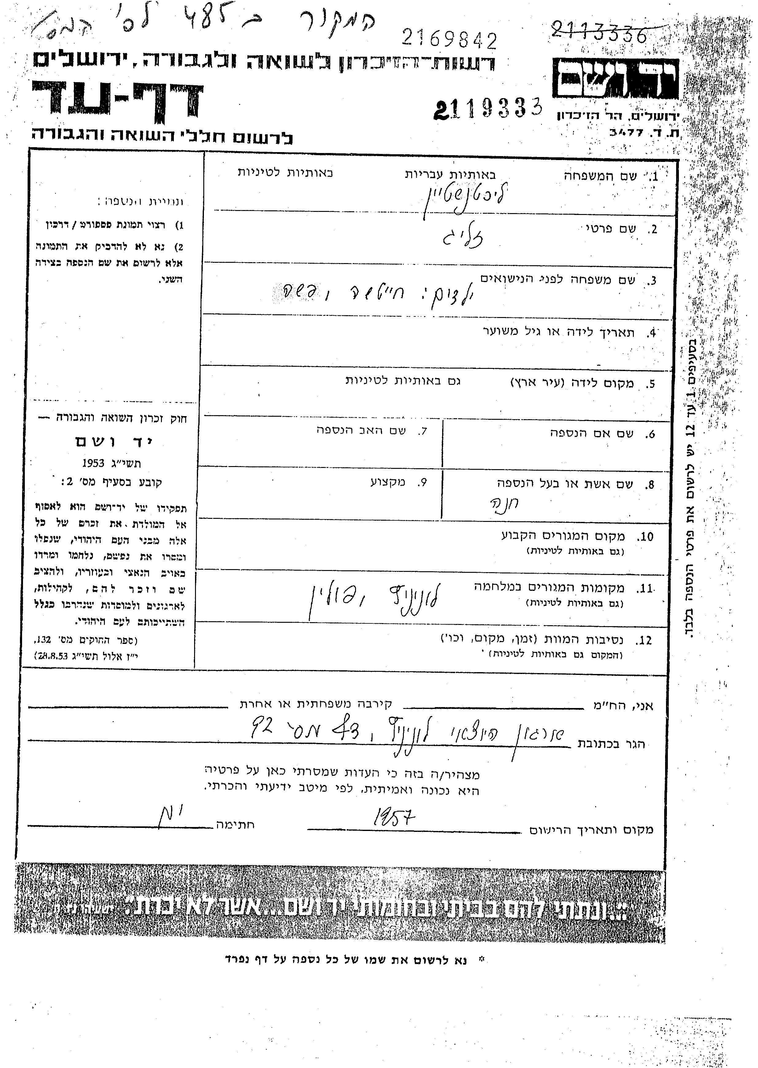 Likhtenshtein Khaicha unstated place, Page of Testimony