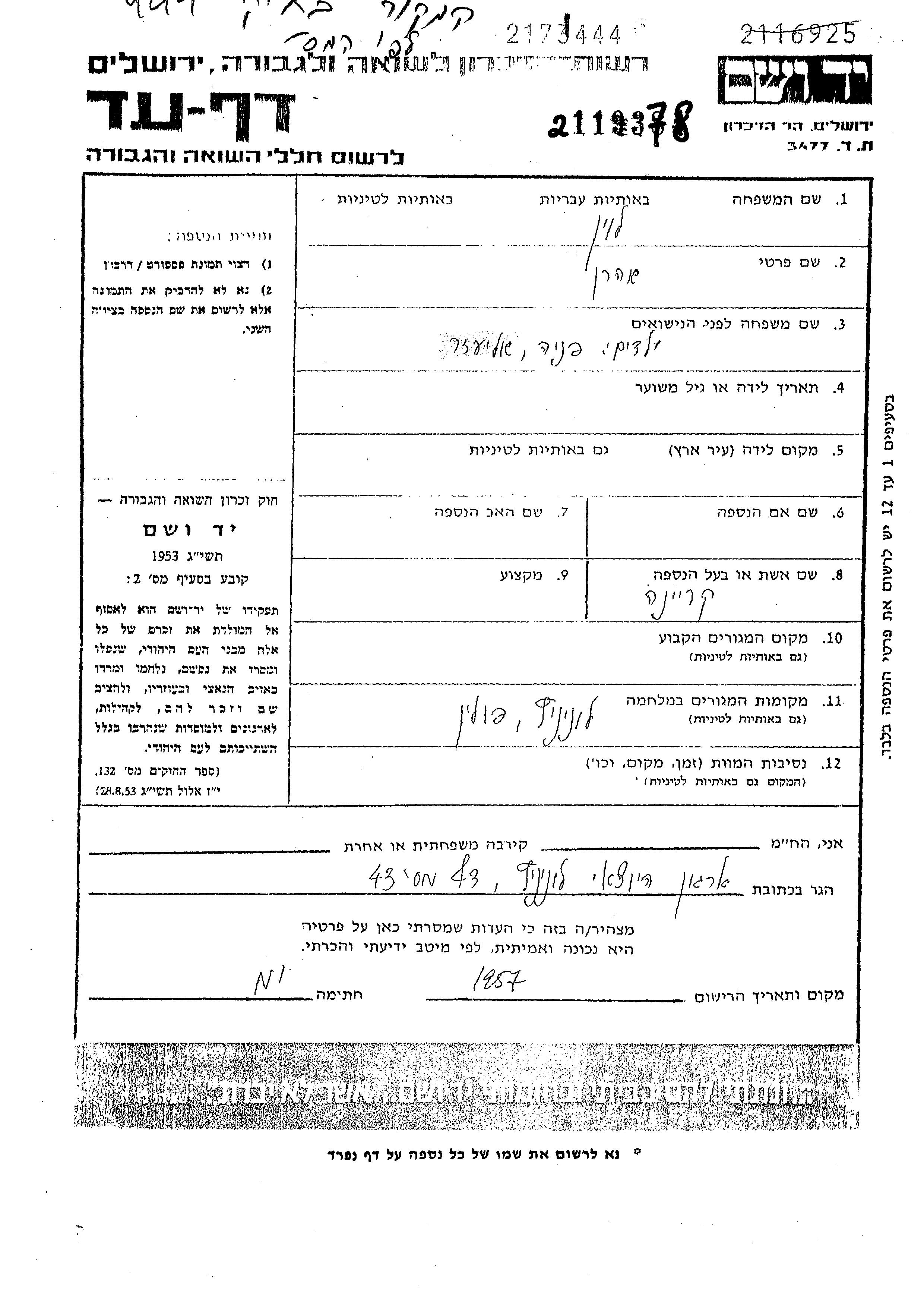 Yad Vashem - Pages of Testimony Names Memorial Collection