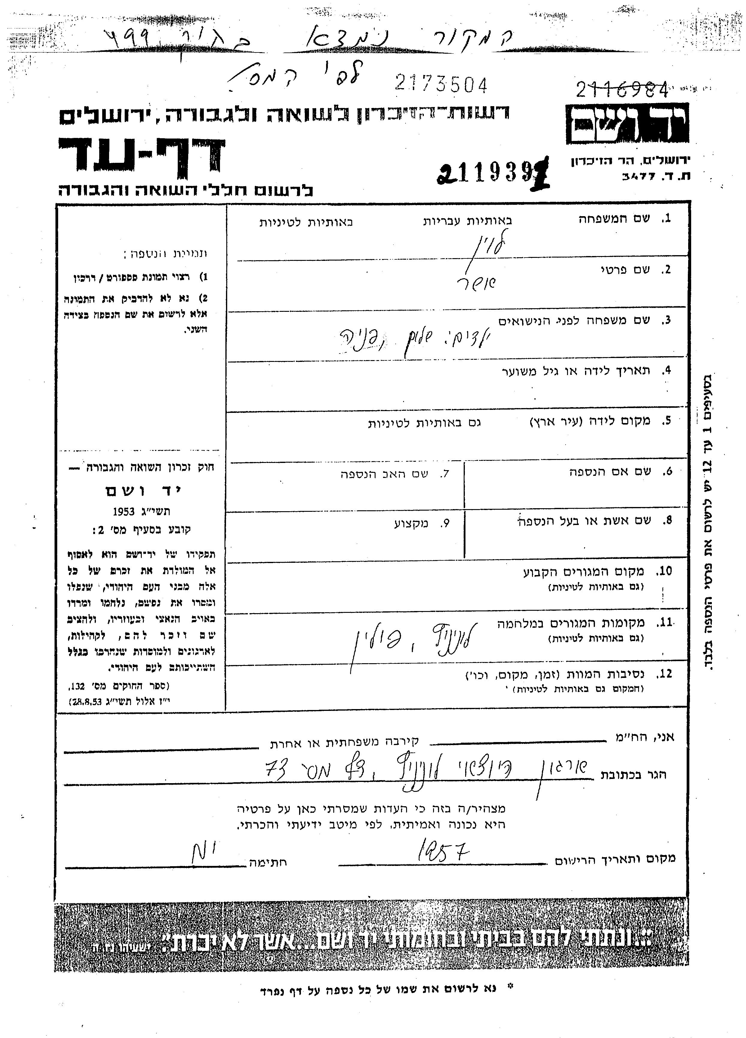 Yad Vashem - Pages of Testimony Names Memorial Collection