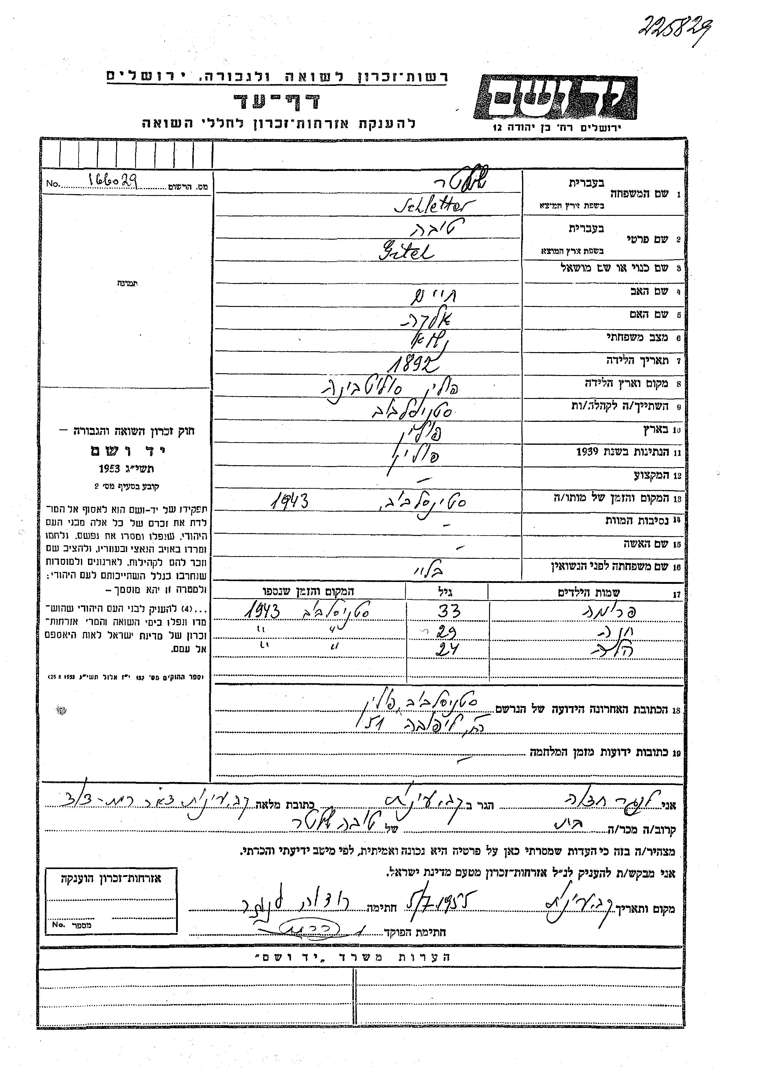 Search by last name of the submitter of the Page of Testimony, including diminutives or nicknames