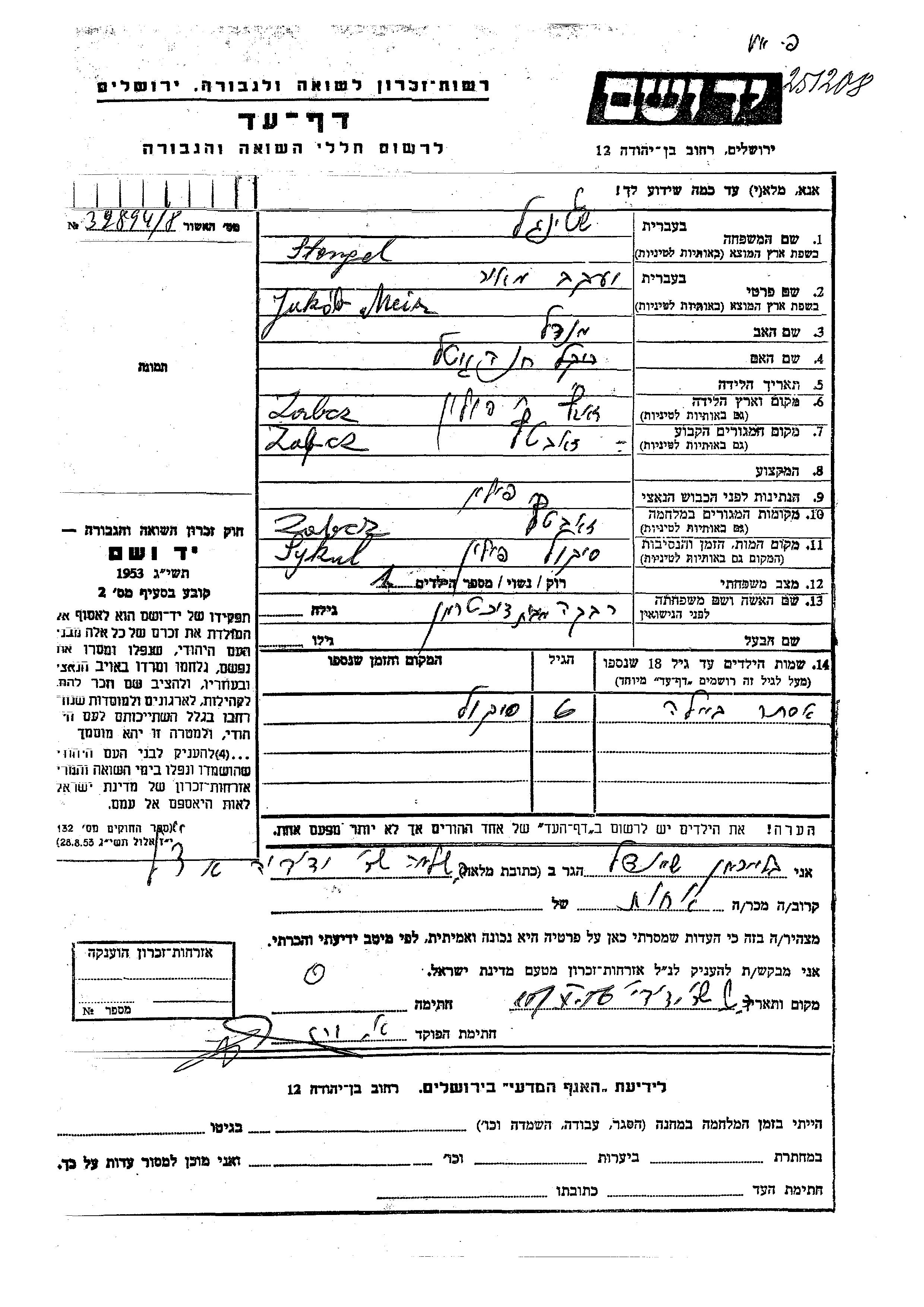 Yad Vashem - Pages of Testimony Names Memorial Collection