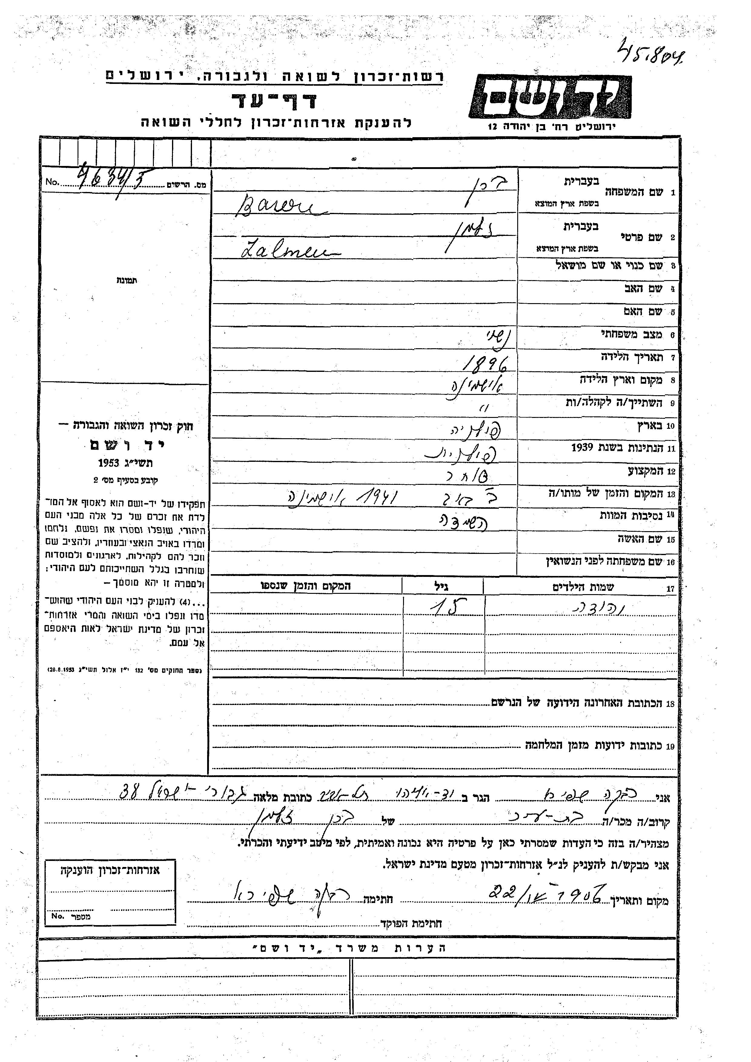 Baran Yehuda Auschwitz, Poland Page of Testimony