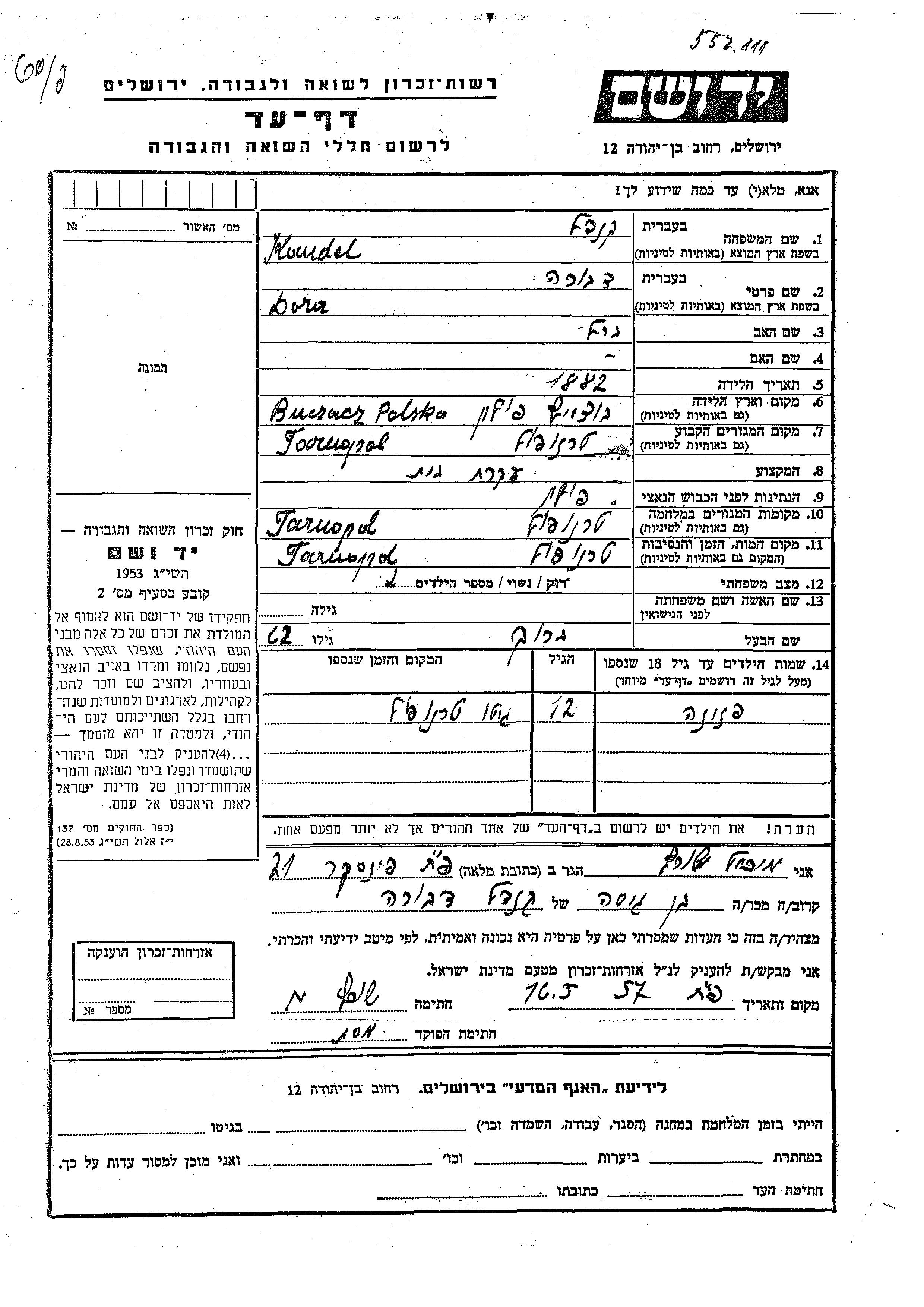 Kandel Pnina Tarnopol, Poland Page of Testimony