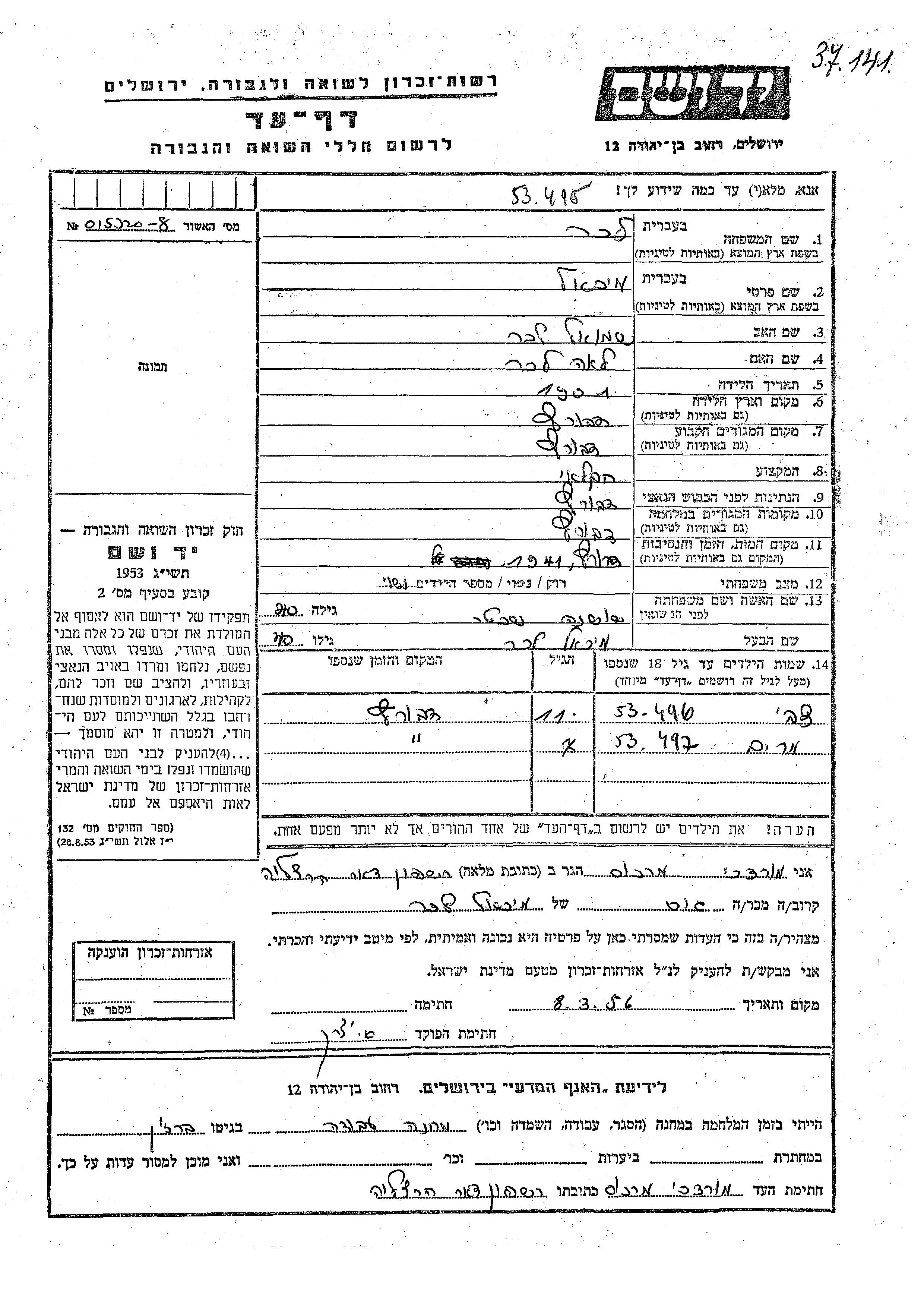 Search by name of Prewar permanent residence, Town, Village, District, Region or Country.