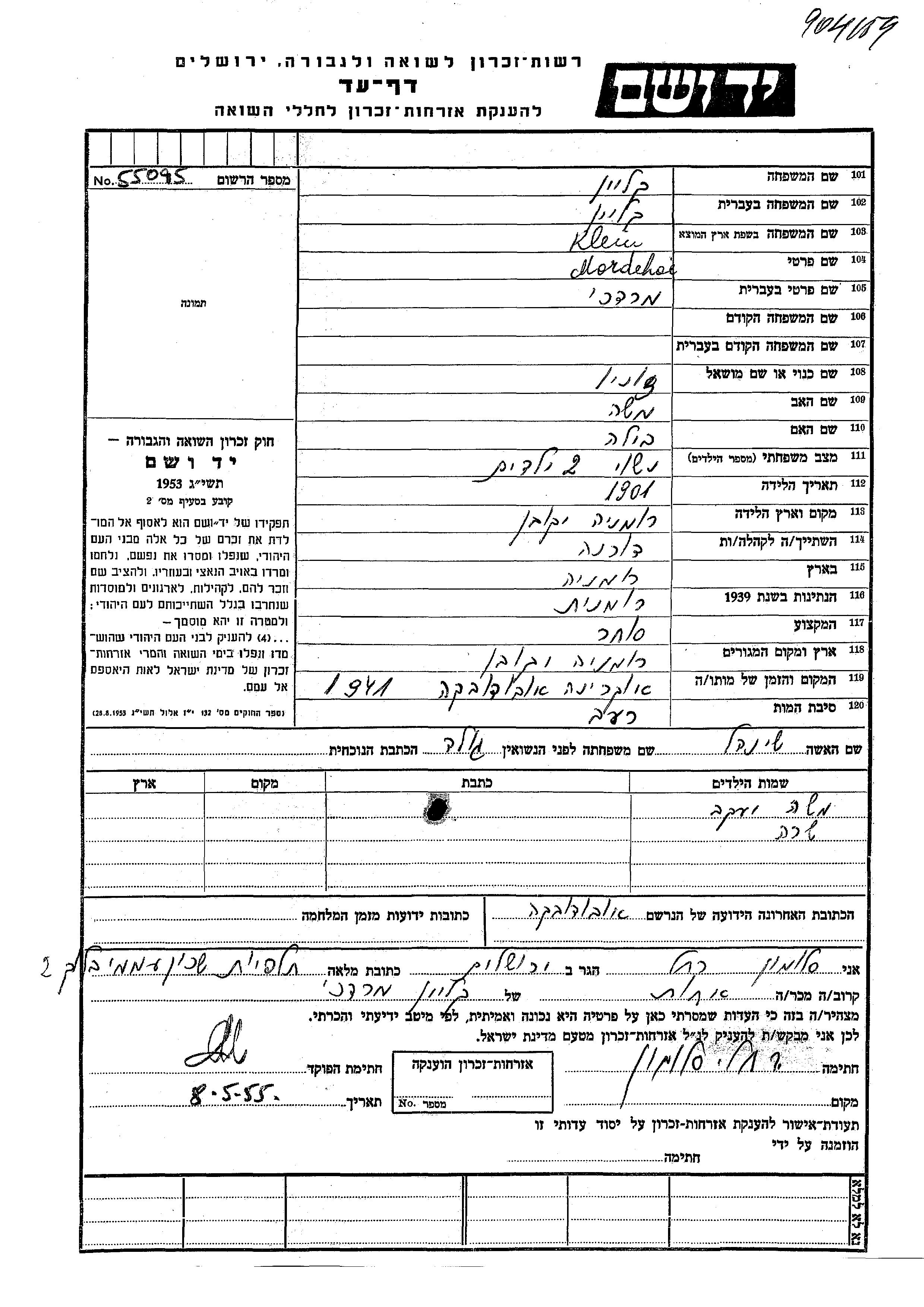 Yad Vashem - Pages of Testimony Names Memorial Collection