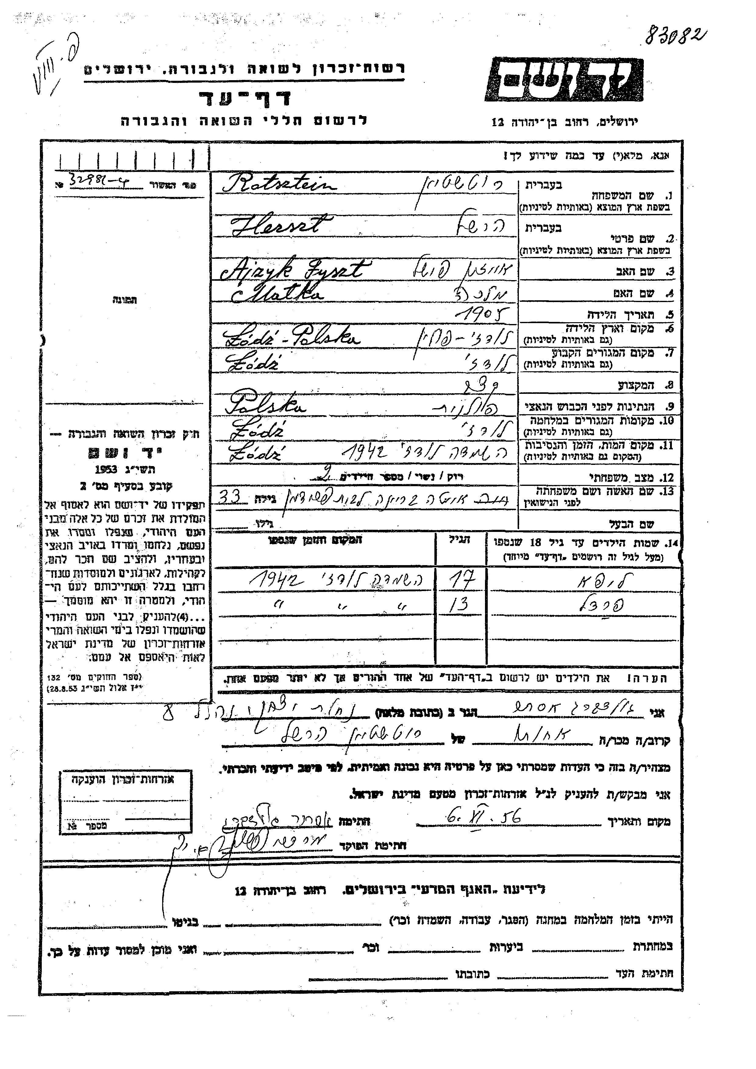 Fradel Rotsztein was born to Herszl and Ita Breina nee Fridman. She was child. Prior to WWII she lived in Lodz, Poland. During the war she was in Lodz, Poland. Fradel was murdered in the Shoah.