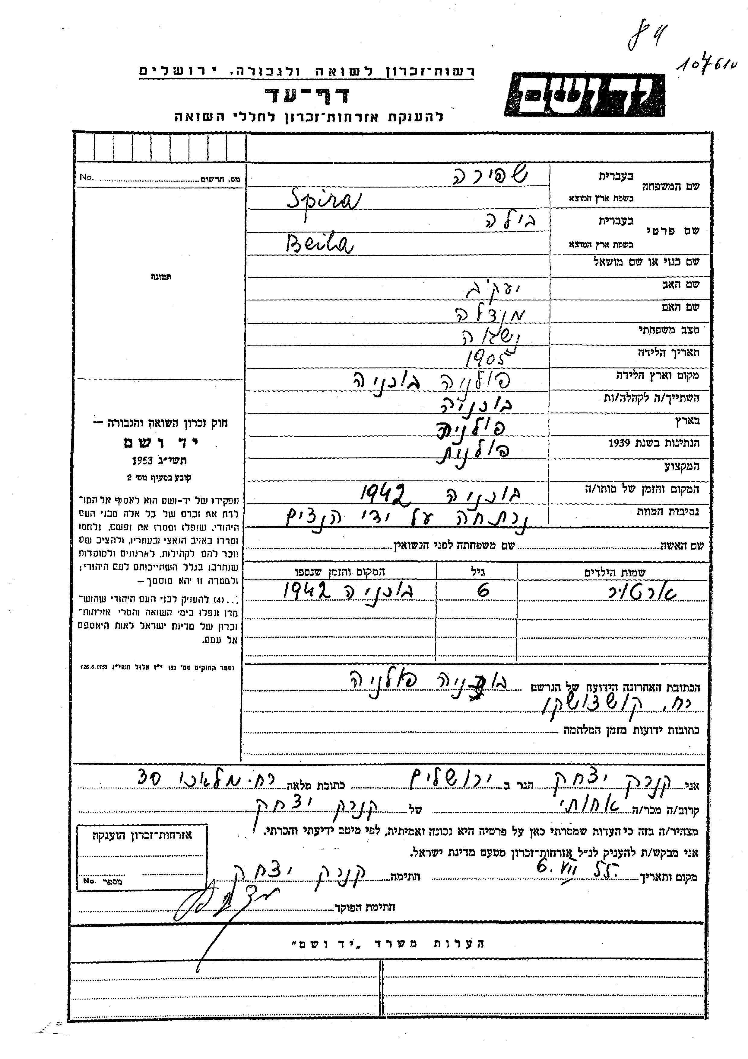 Artur Spira was born to Henek Khaim and Bila. He was child. Prior to WWII he lived in Bochnia, Poland.