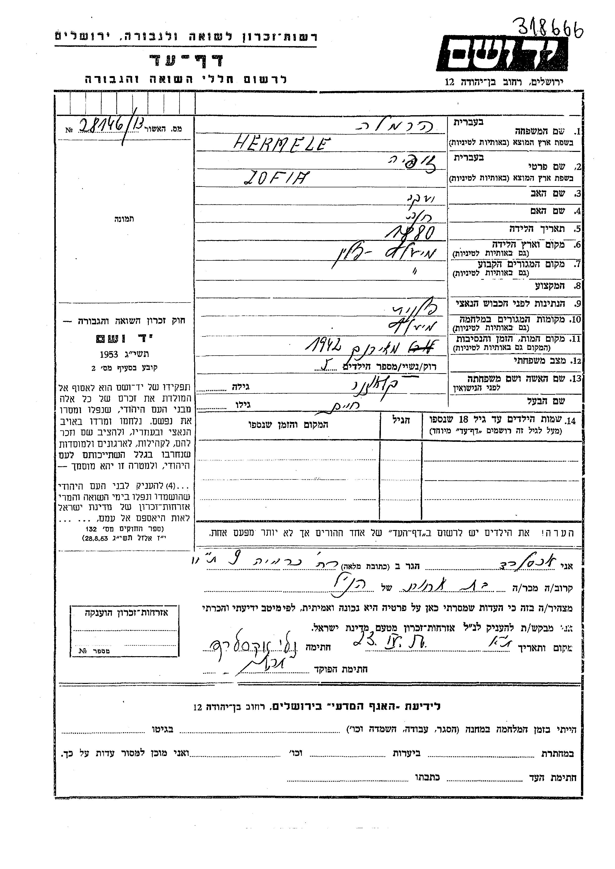 Hermele Zofia 1880 Mielec, Poland Page of Testimony