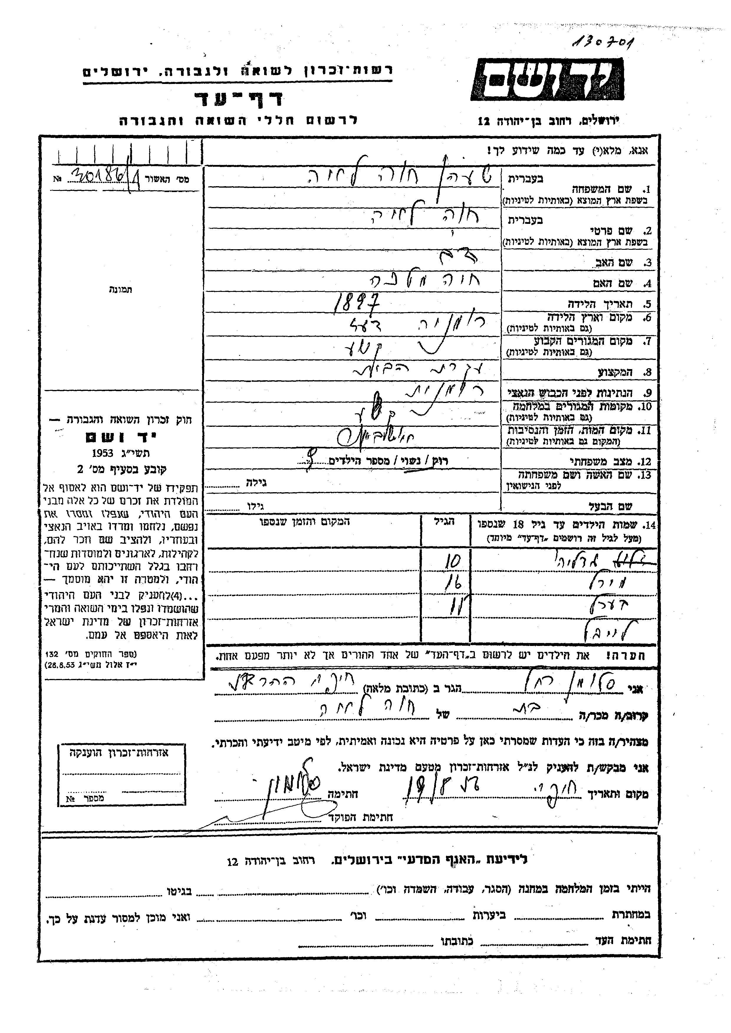 Yad Vashem - Pages of Testimony Names Memorial Collection