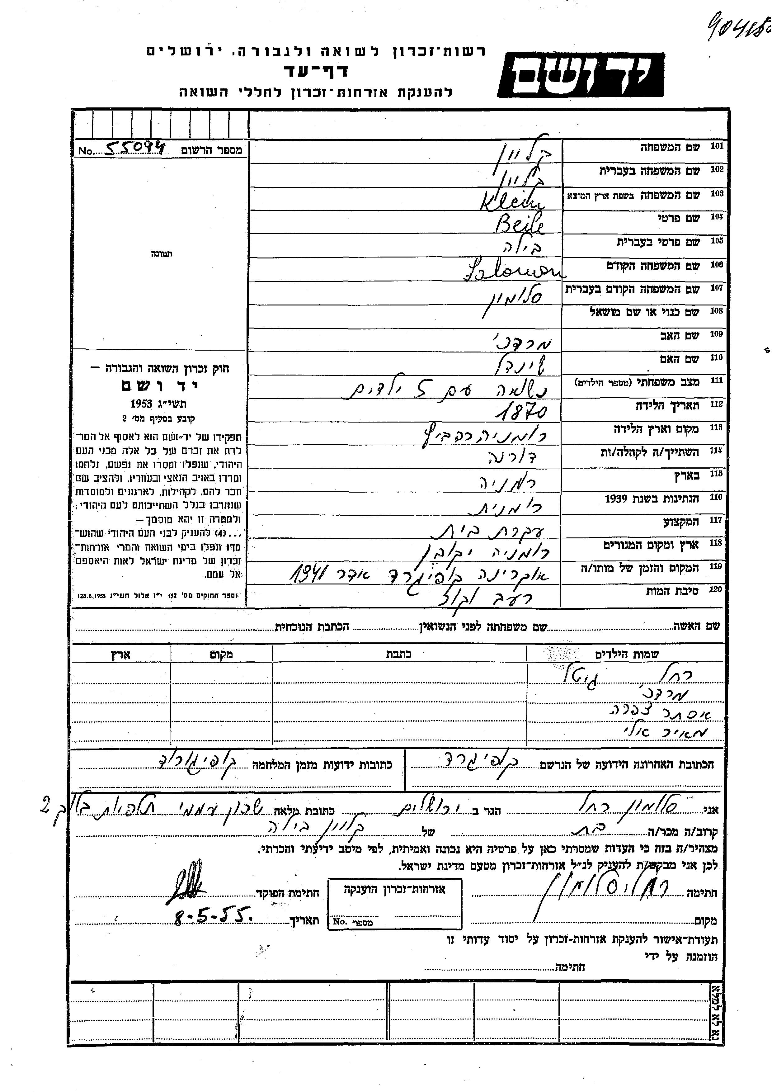 Yad Vashem - Pages of Testimony Names Memorial Collection