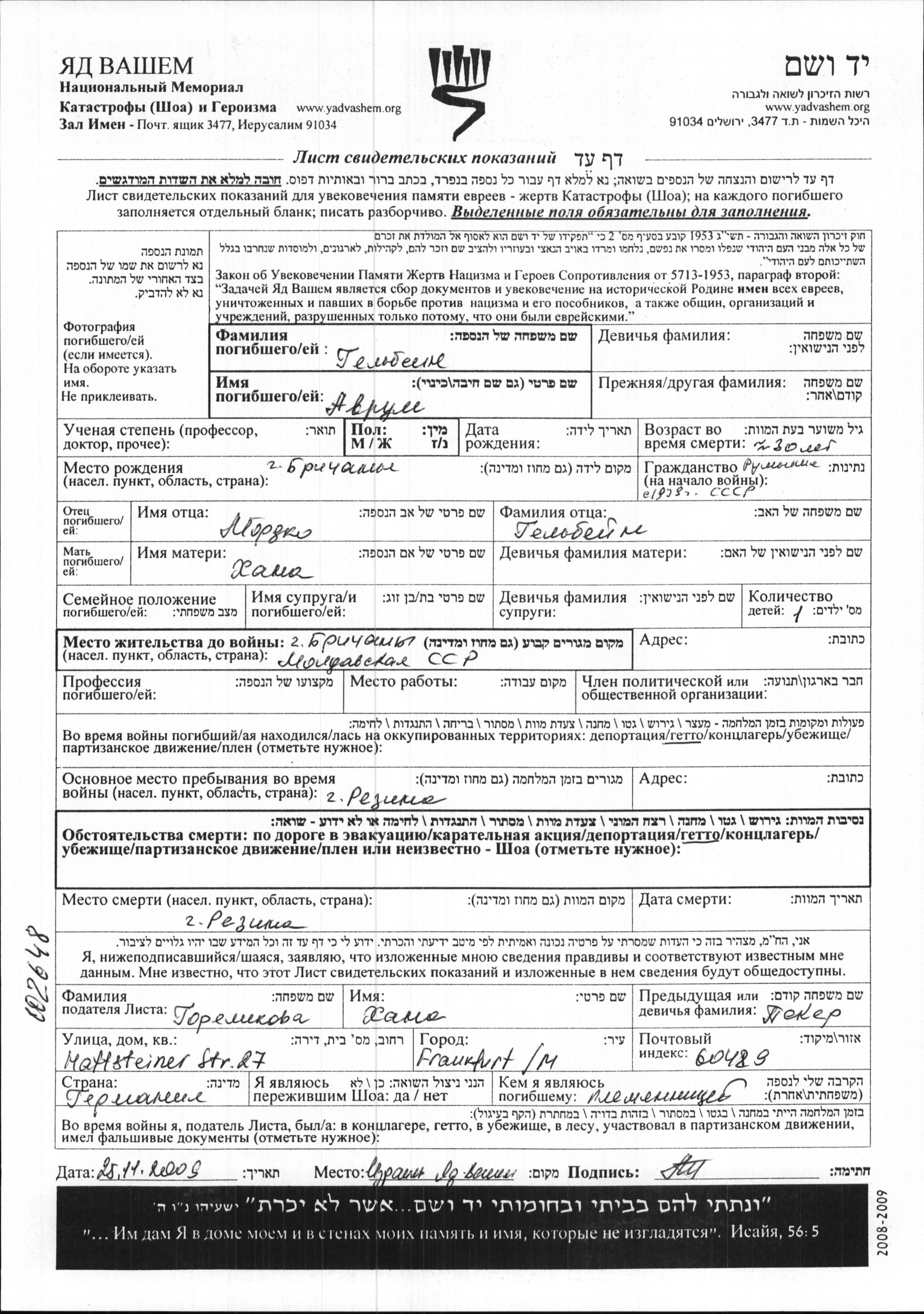 Yad Vashem - Pages of Testimony Names Memorial Collection