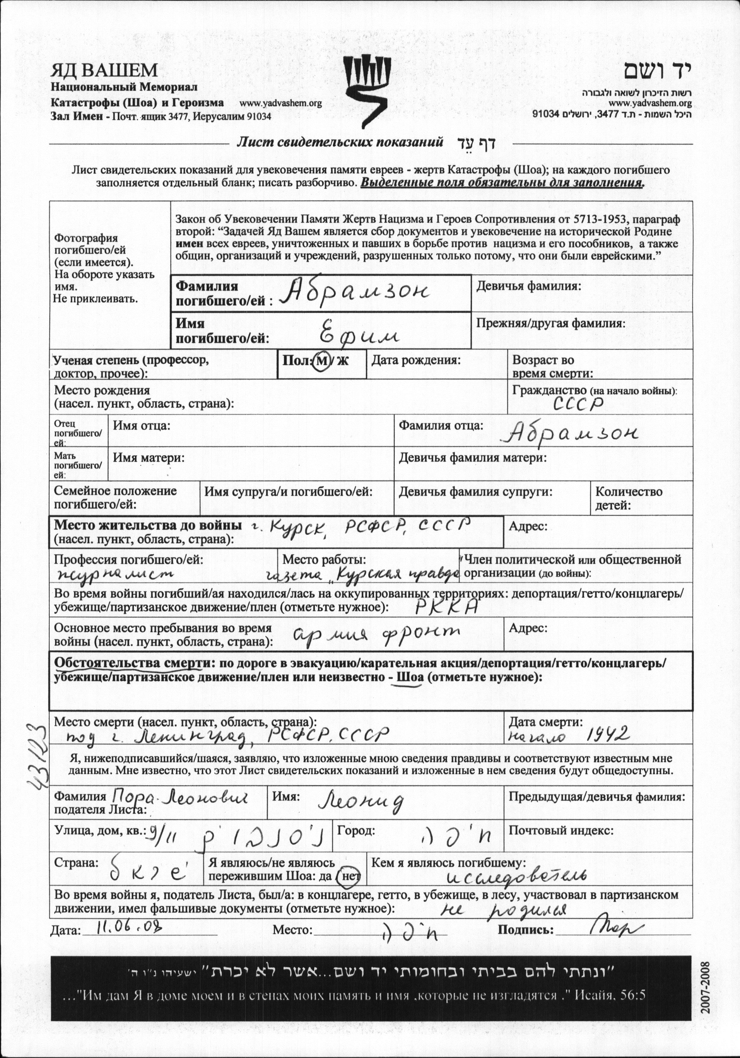 Search by last name of the submitter of the Page of Testimony, including diminutives or nicknames