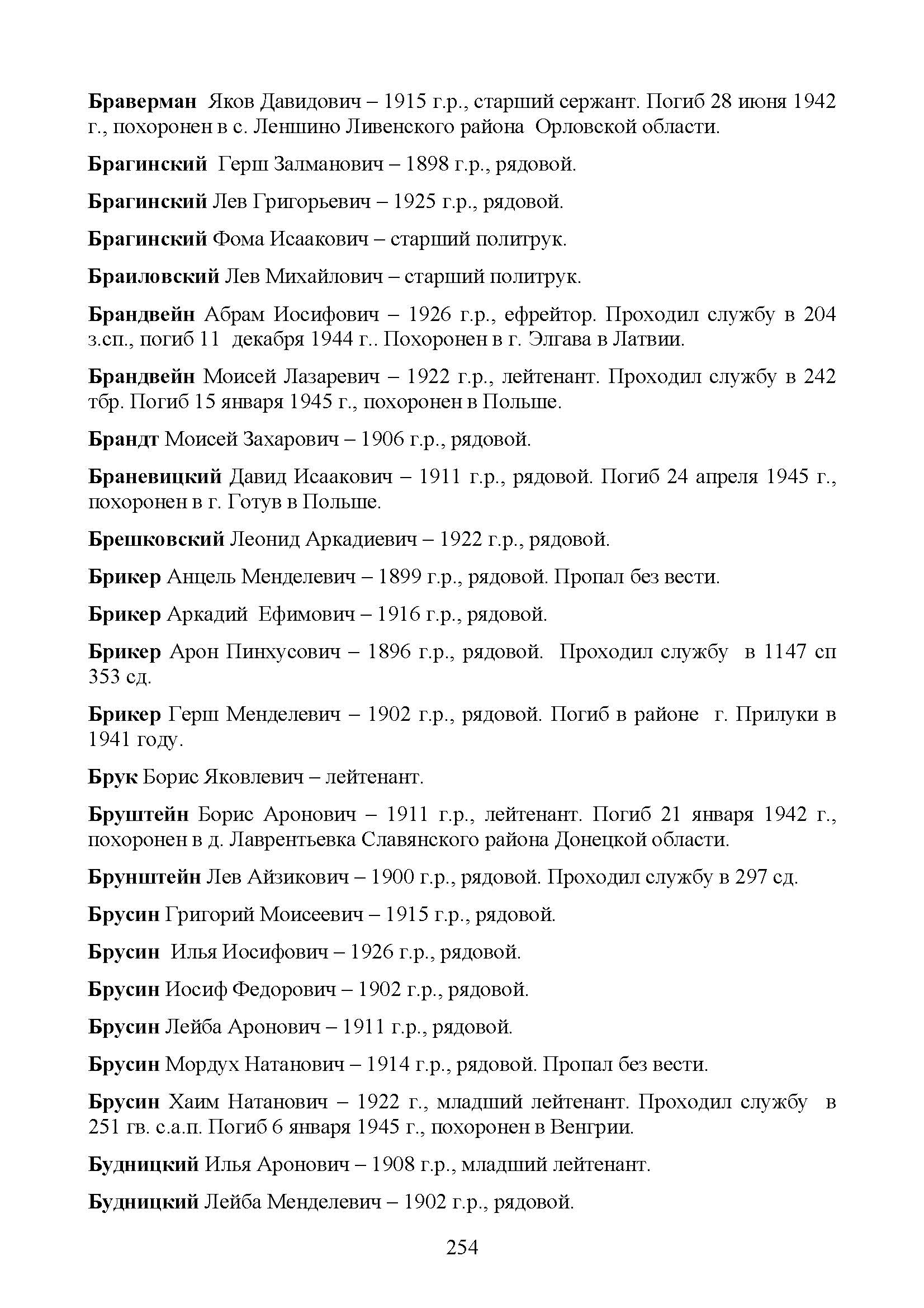 Second lieutenant Boris Brunshteyn was born, 1911 to Aron. Prior to WWII he lived in Chernigov, Ukraine (USSR). During the war he was in the Soviet armed forces. Second lieutenant Brunshteyn was killed in military service in WWII. Place of death: the Soviet armed forces, 21/01/1942.