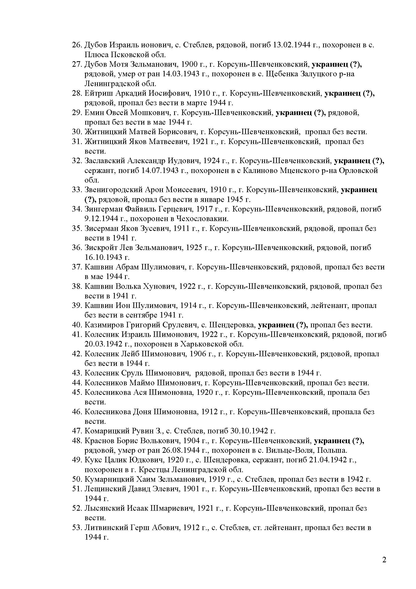 Izrail Dubov was born in Steblev, Ukraine (USSR) to Iona. Prior to WWII he lived in Steblev, Ukraine (USSR). During the war he was in the Soviet armed forces. Izrail was killed in military service in WWII. Place of death: unknown, 13/02/1944.