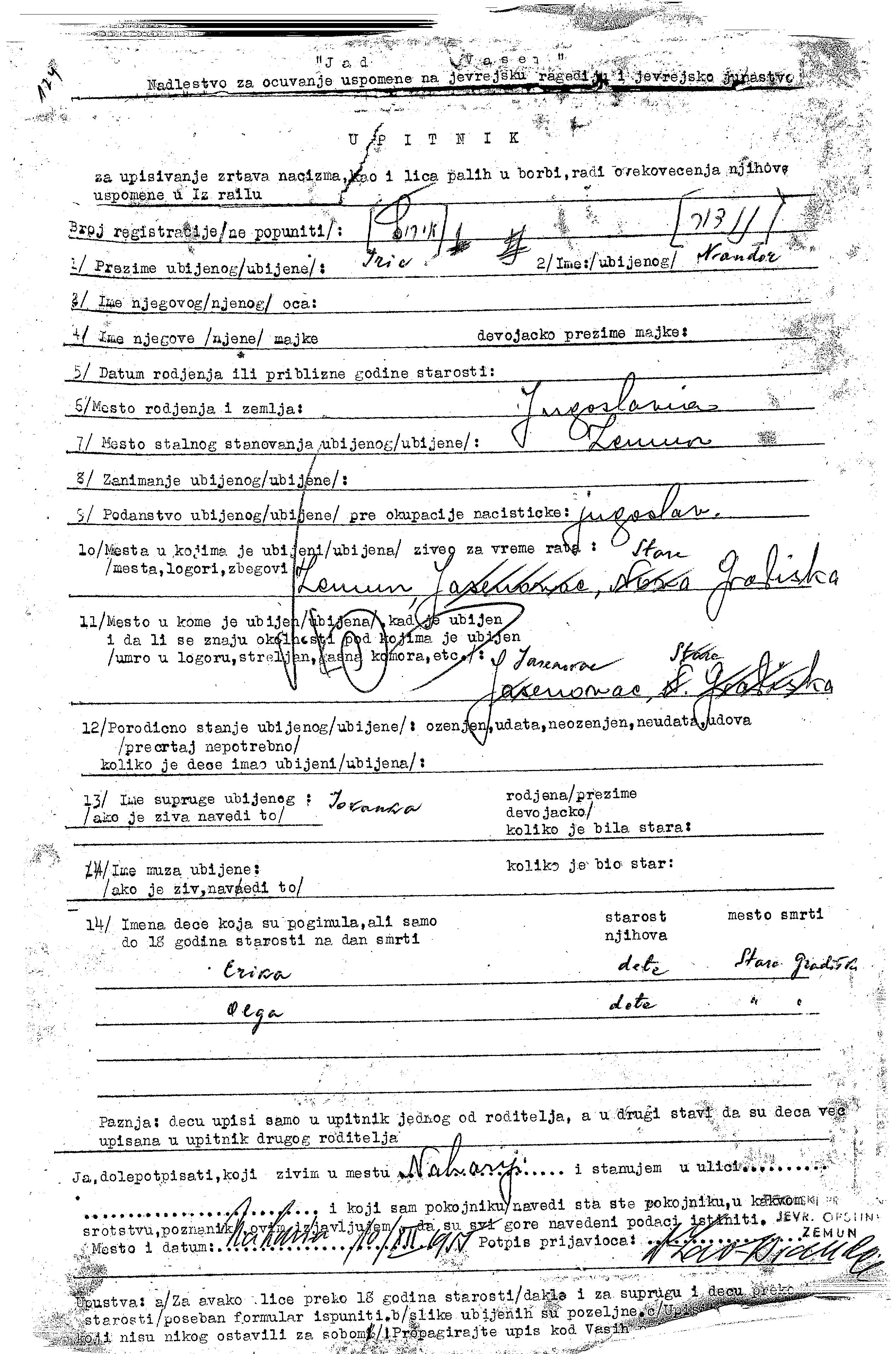 Iric Olga Zemun, Yugoslavia Page of Testimony