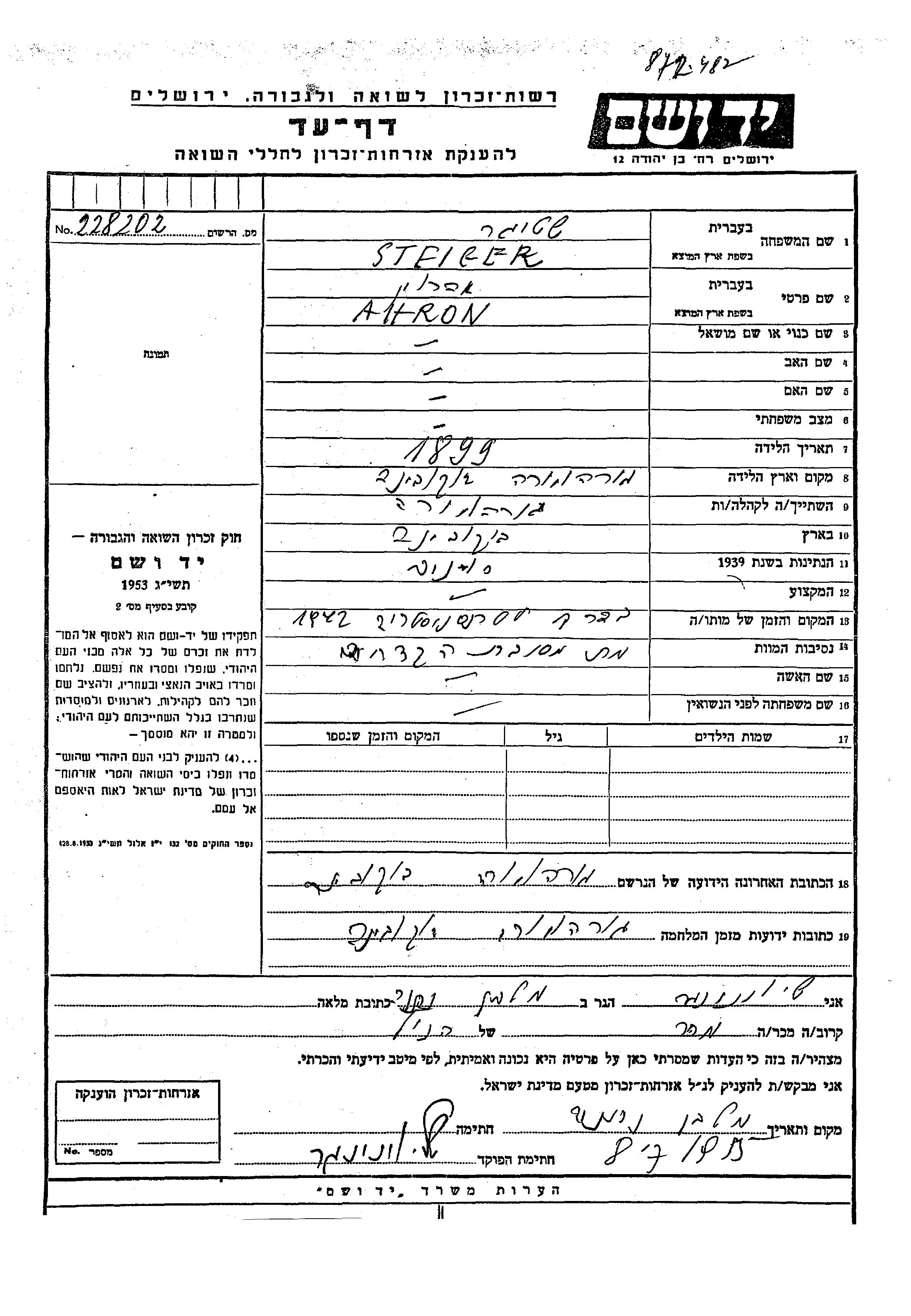 Yad Vashem - Pages of Testimony Names Memorial Collection