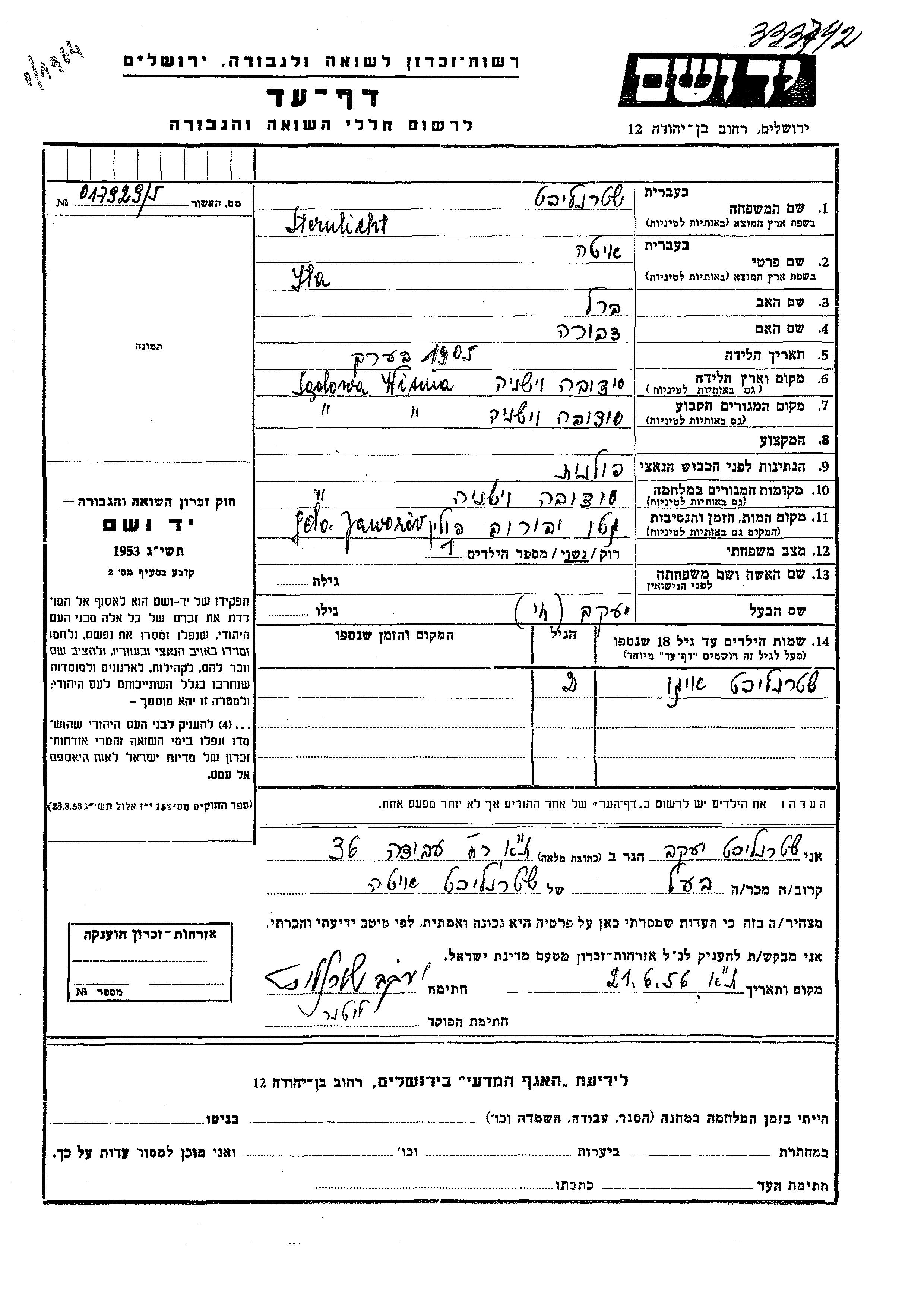 Igo Sternlicht was born to Yaakov and Yta. He was child. Prior to WWII he lived in Sadowa Wisznia, Poland. During the war he was in Sadowa Wisznia, Poland. Igo was murdered in the Shoah.