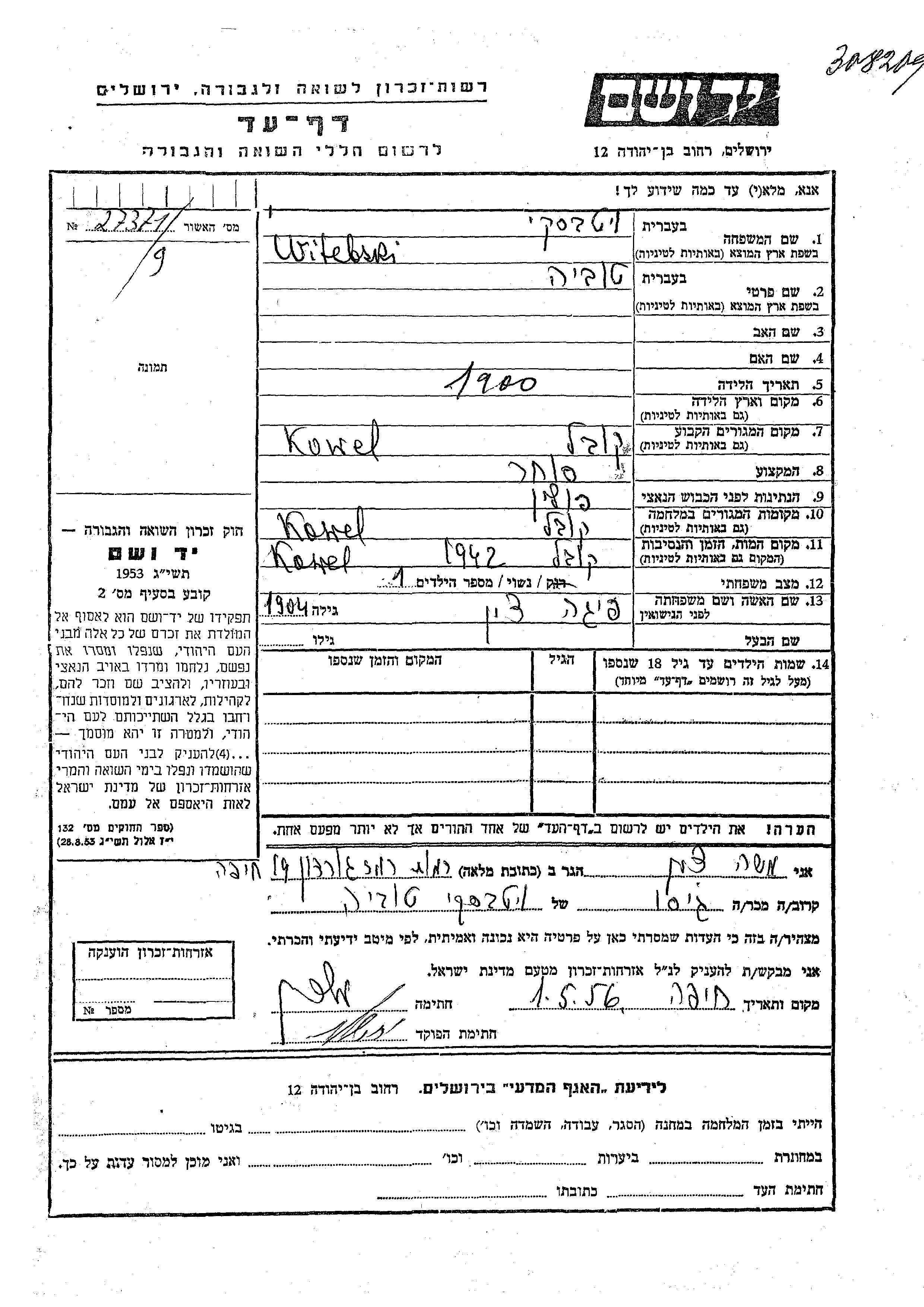 Witebski Tuvia 1900 Kowel, Poland Page of Testimony