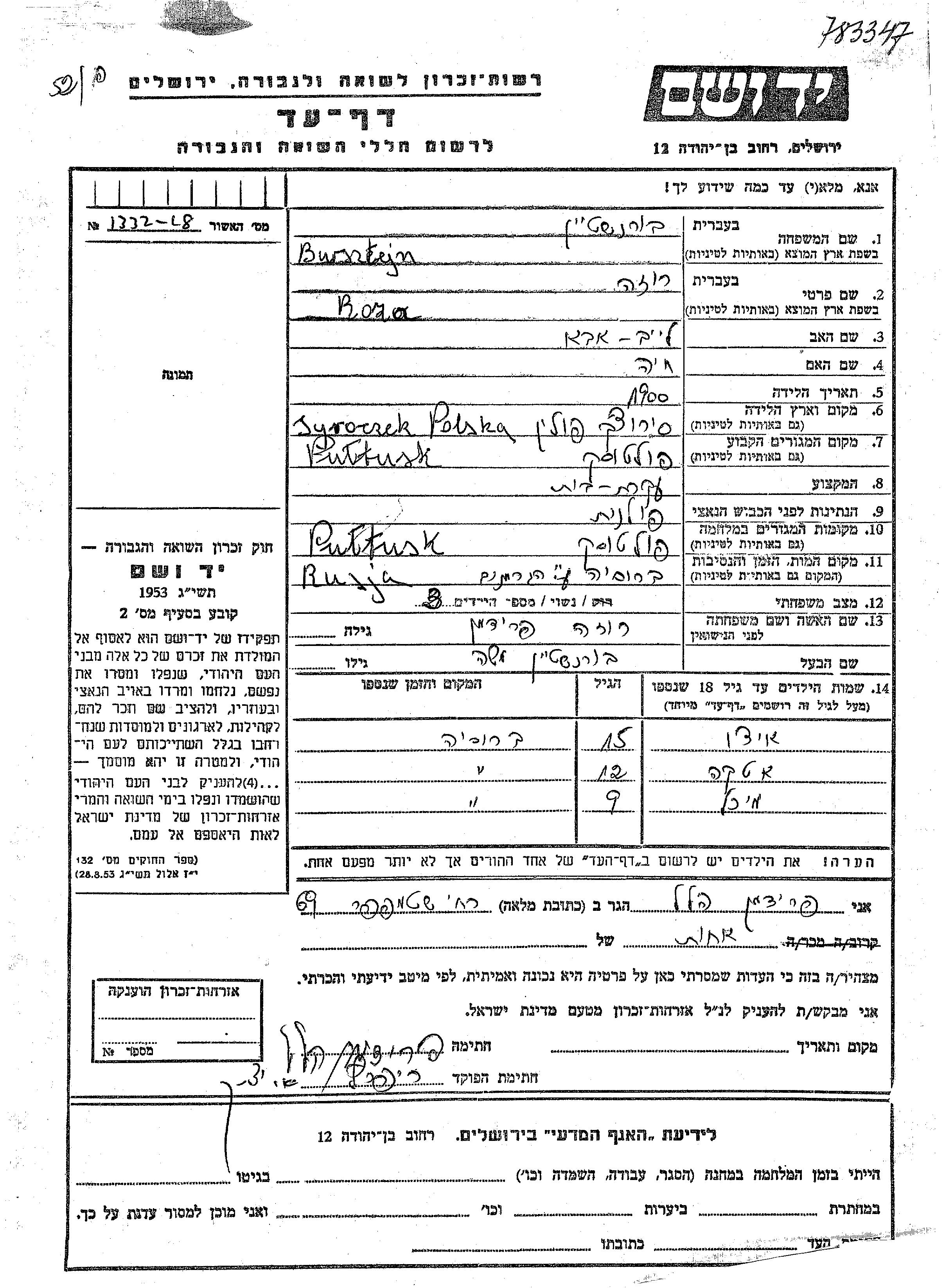 Burstejn Bornshtein Ido Pultusk, Poland Page of Testimony