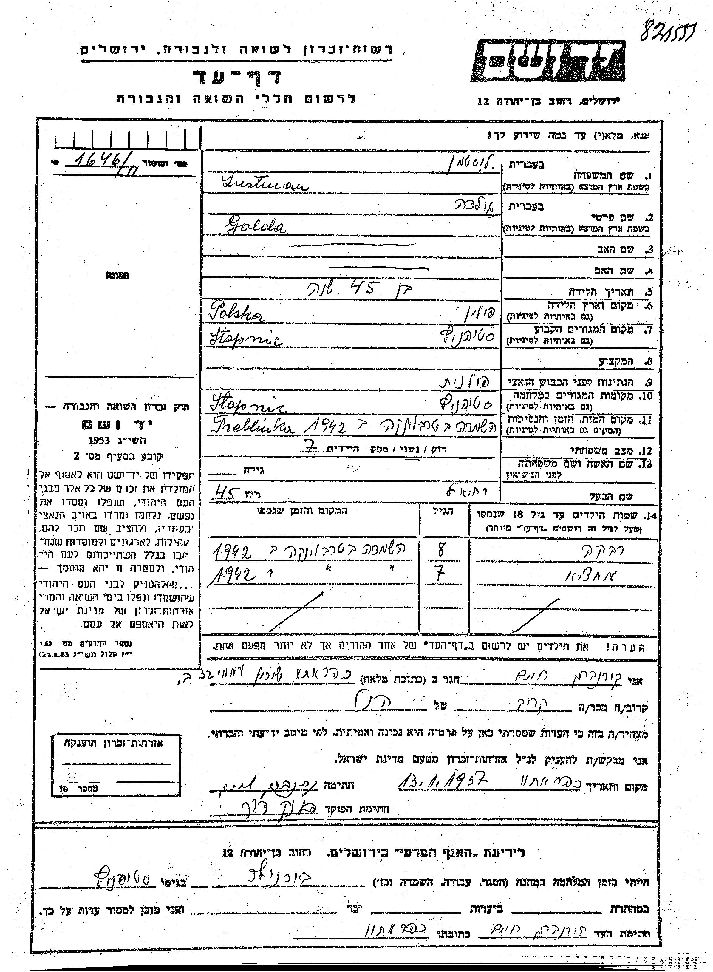 Lustman Makhchia Stopnica, Poland Page of Testimony