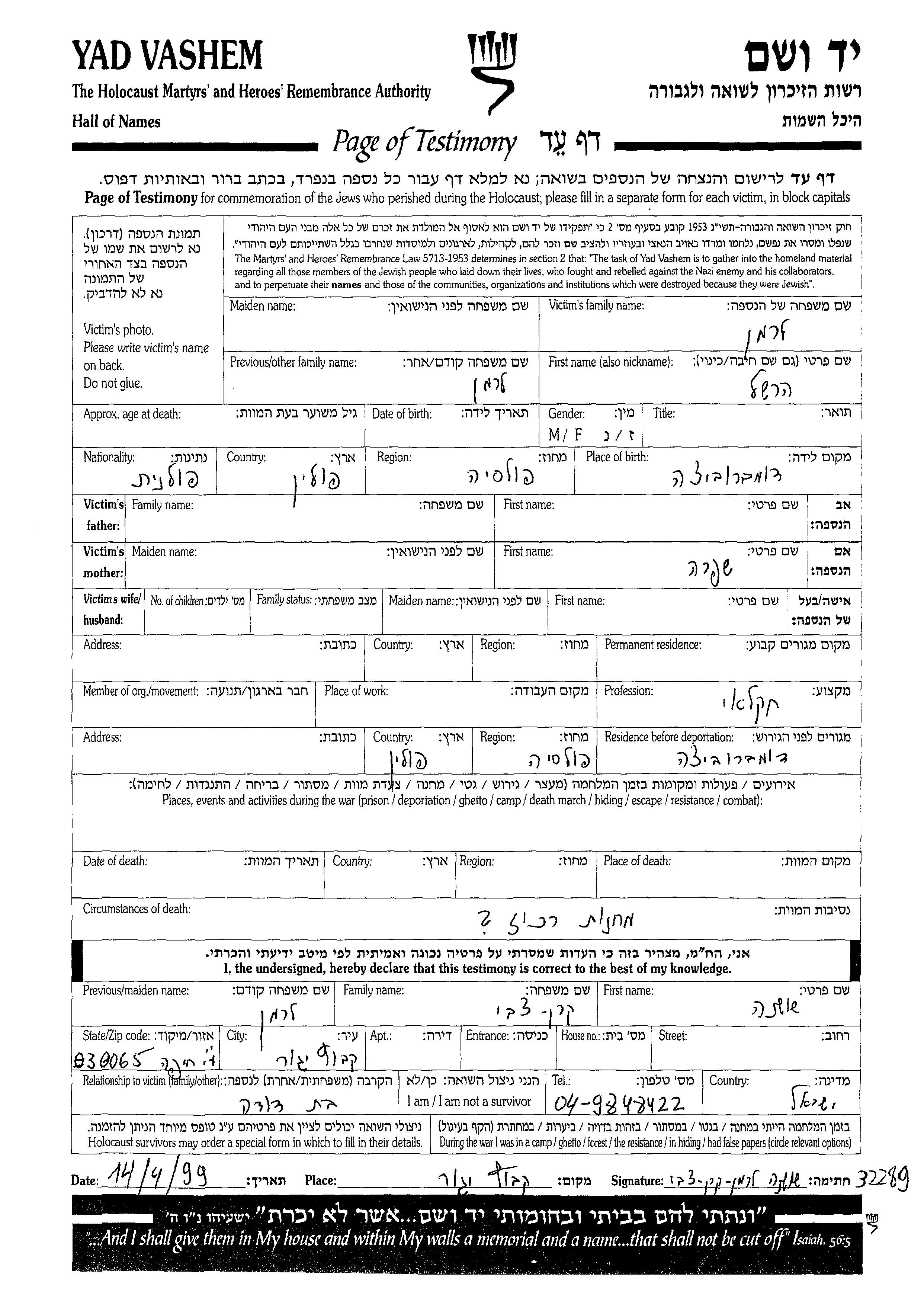 Yad Vashem - Pages of Testimony Names Memorial Collection