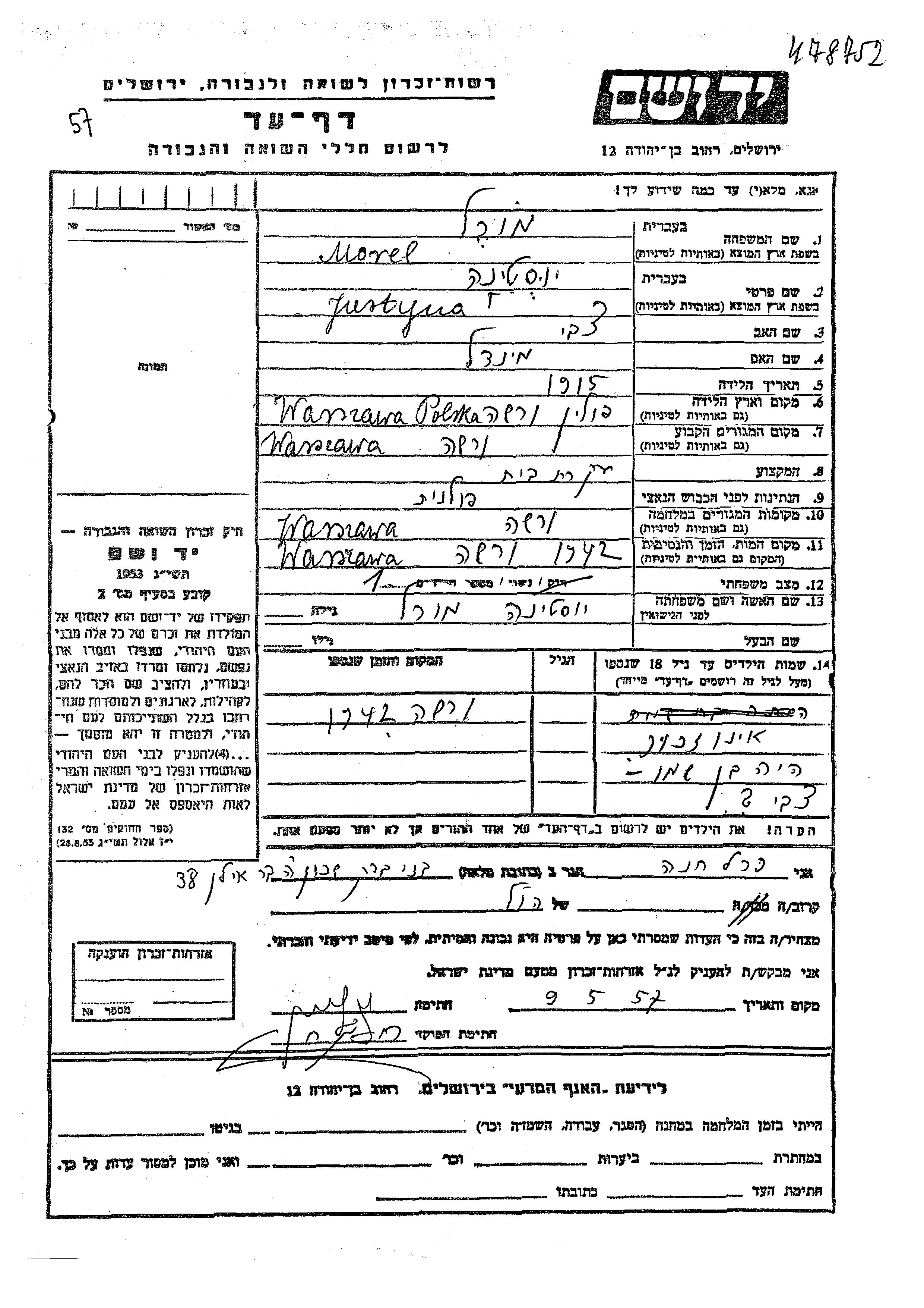 Tzvi Morel was born to Justyna. Was child. Prior to WWII lived in Warsaw, Poland. During the war was in Warsaw, Poland.