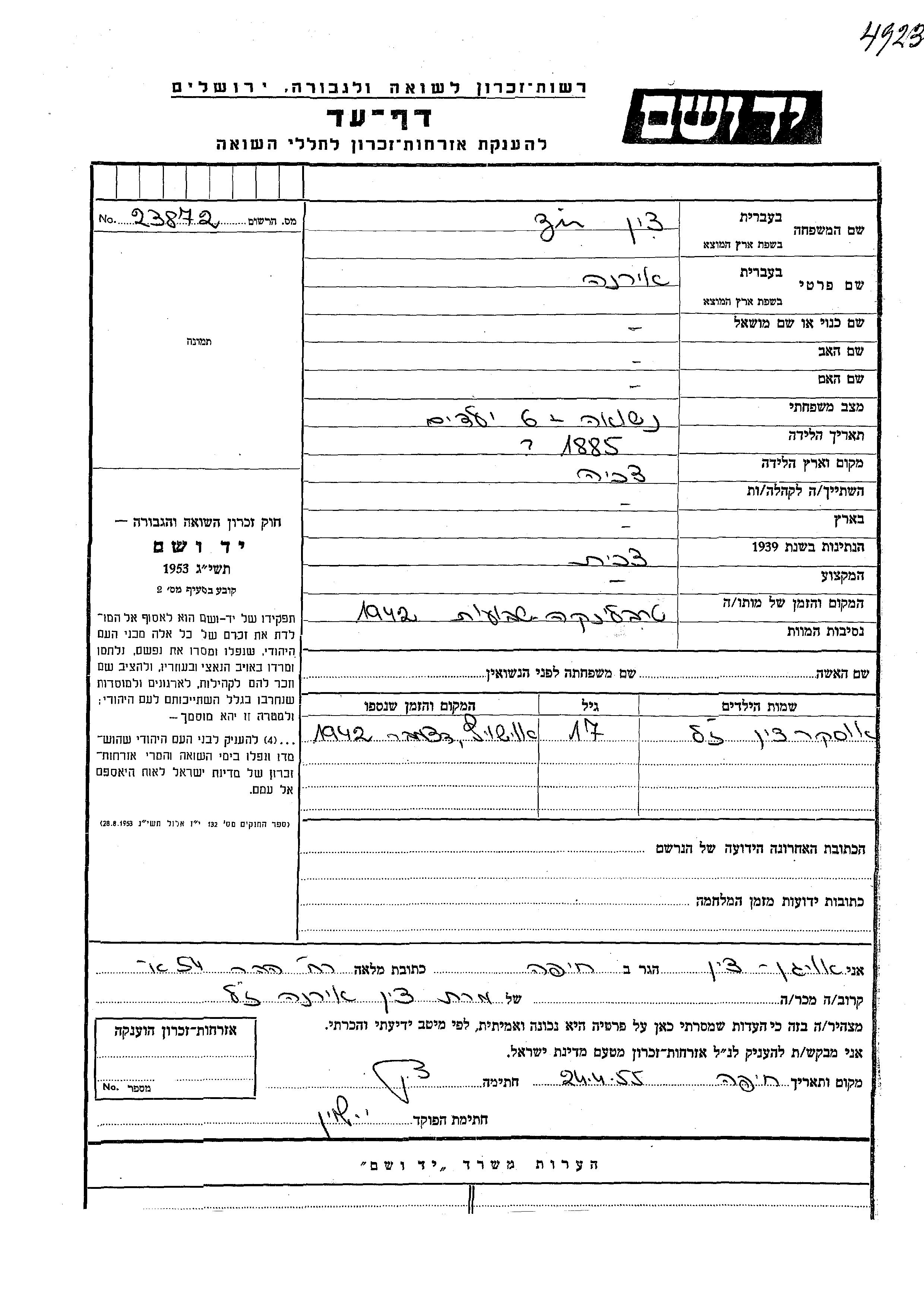 Yad Vashem - Pages of Testimony Names Memorial Collection