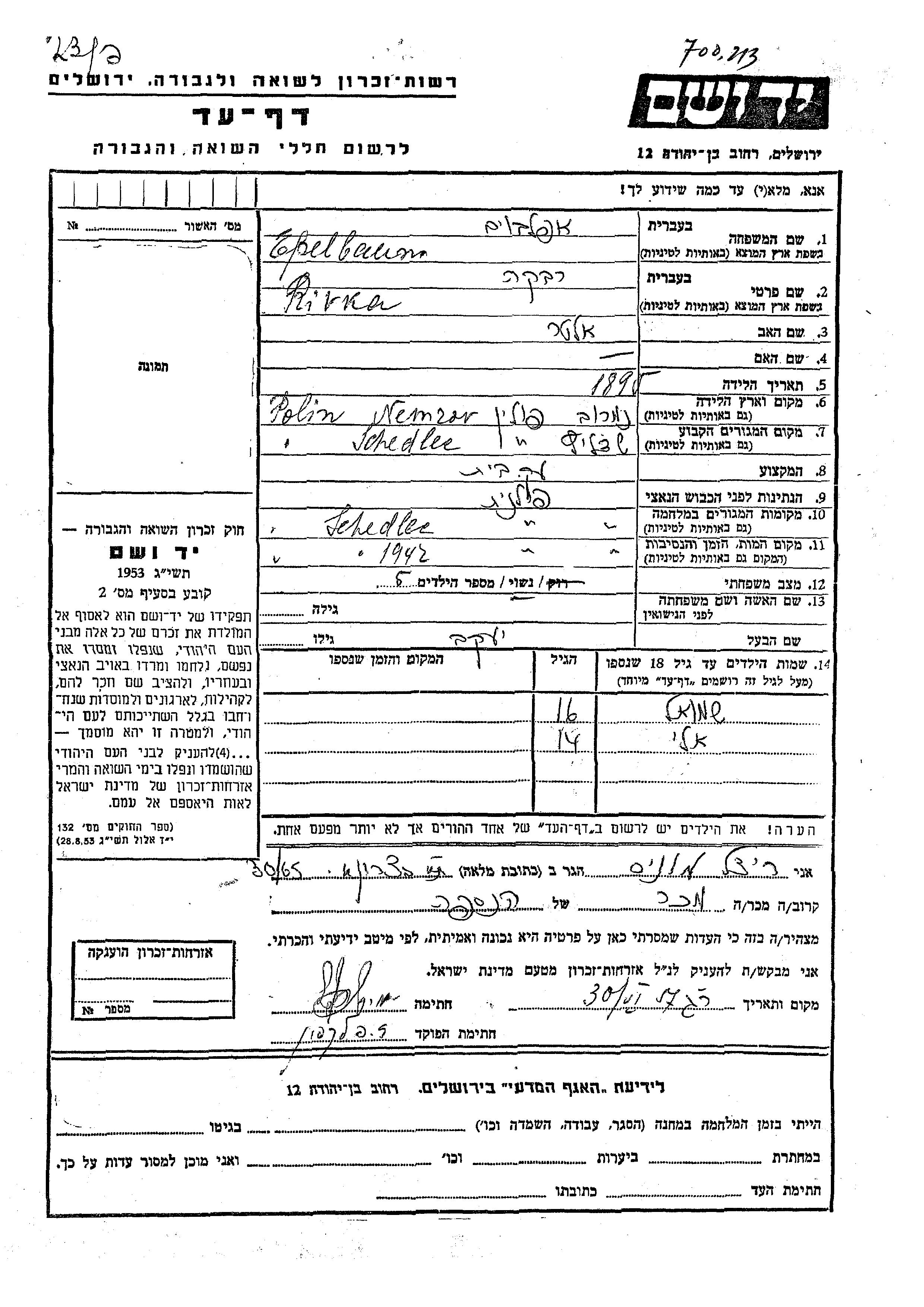 Yad Vashem - Pages of Testimony Names Memorial Collection