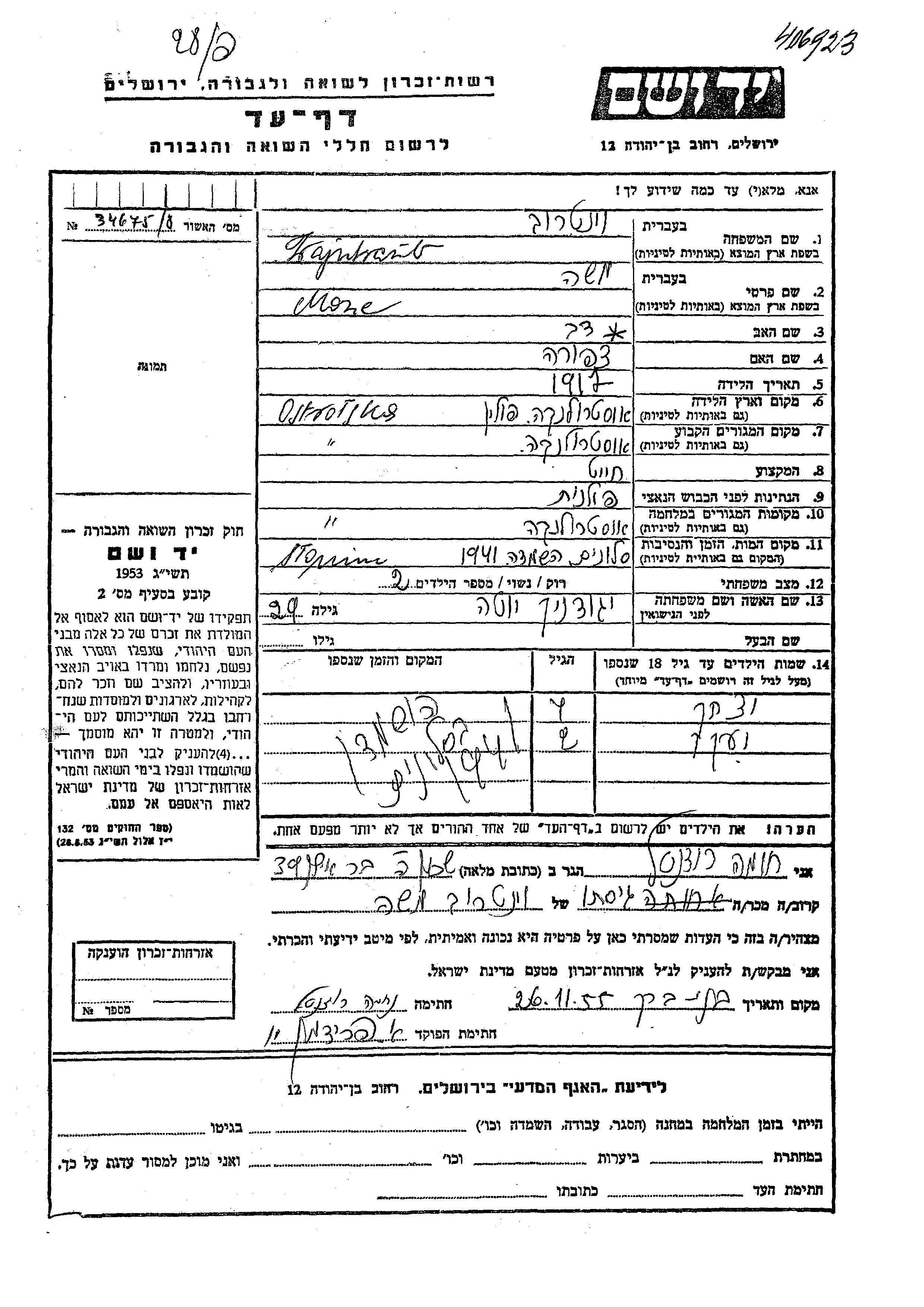 Yad Vashem - Pages of Testimony Names Memorial Collection