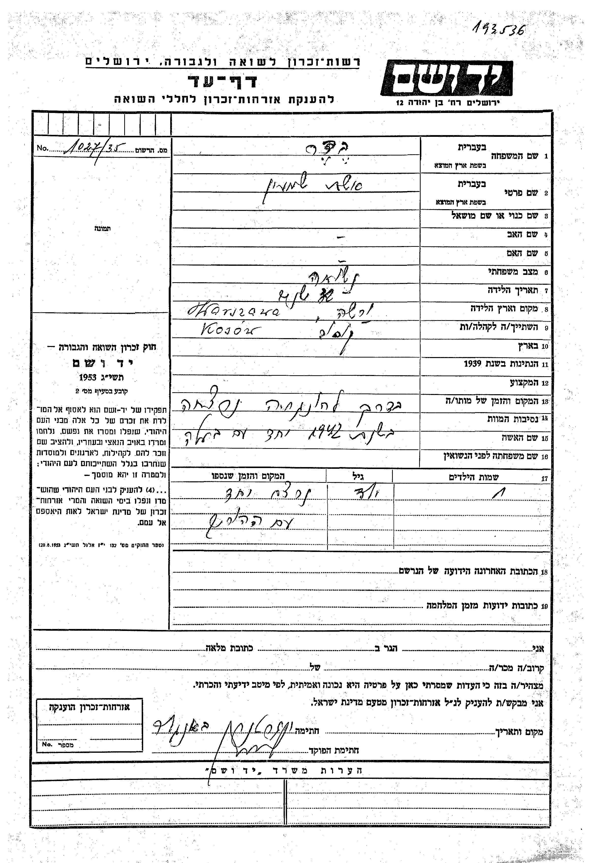 Search by last name of the submitter of the Page of Testimony, including diminutives or nicknames