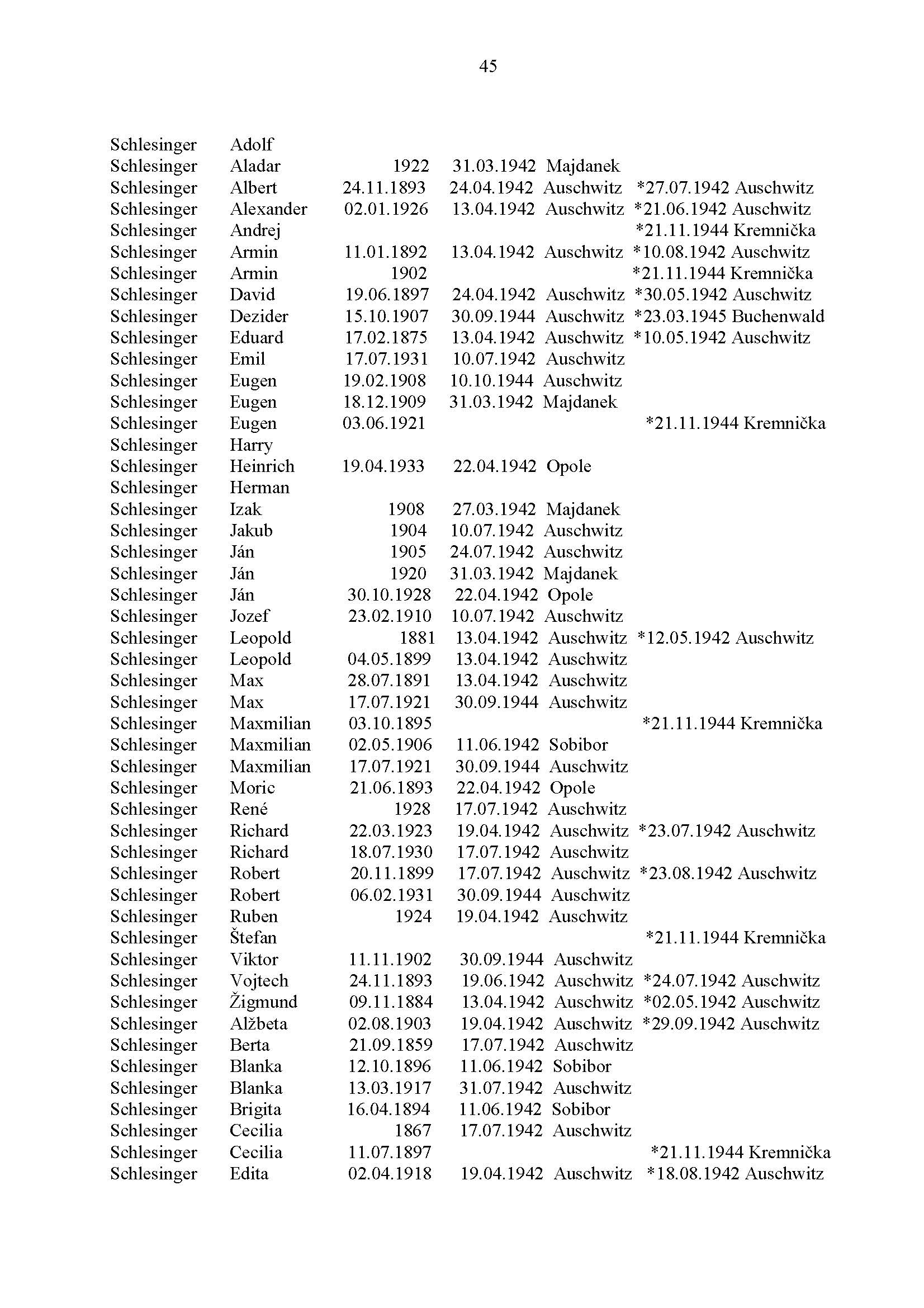 Schlesinger Robert 1931 Topolcany, Czechoslovakia List of persecuted persons