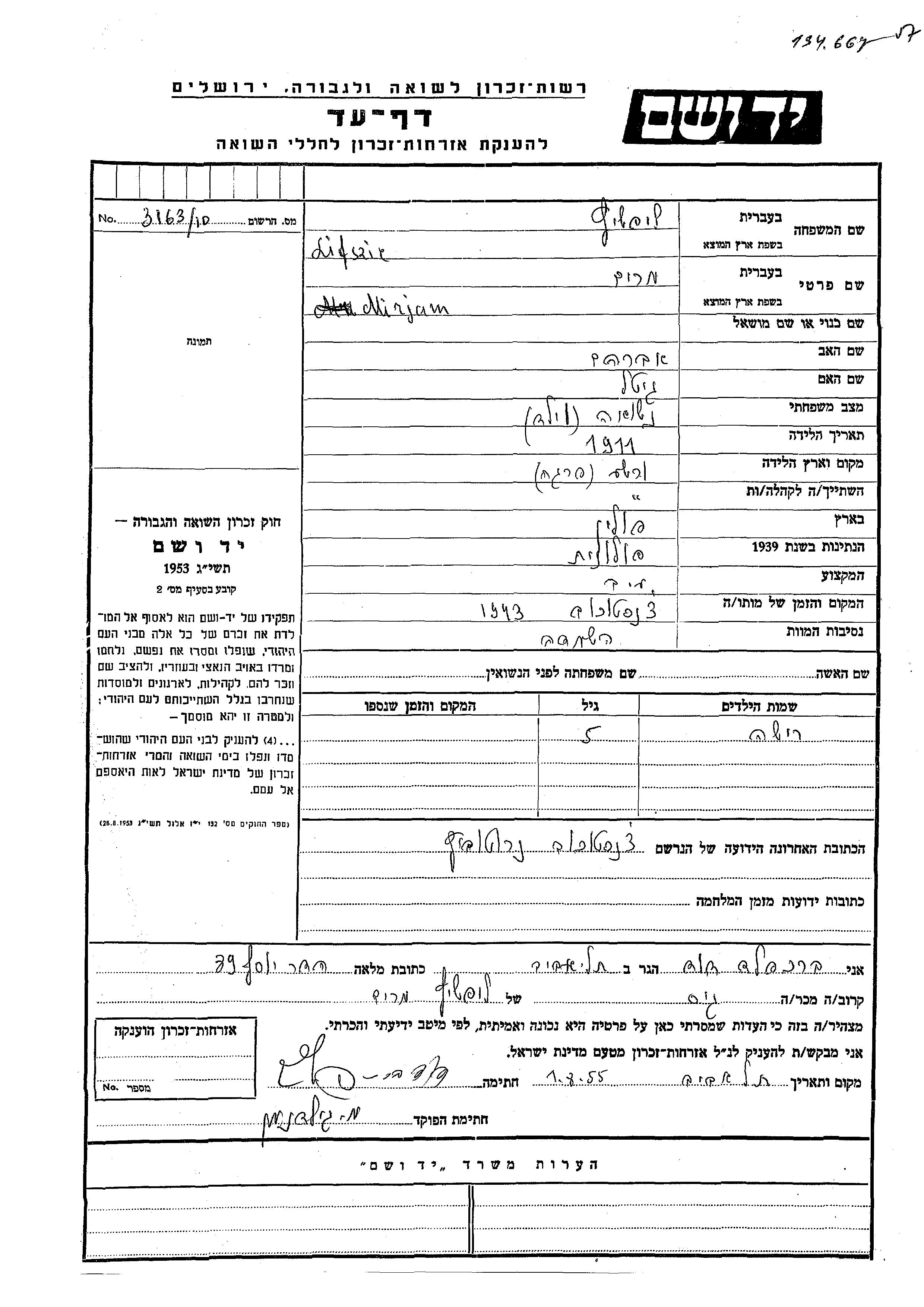 Yad Vashem - Pages of Testimony Names Memorial Collection