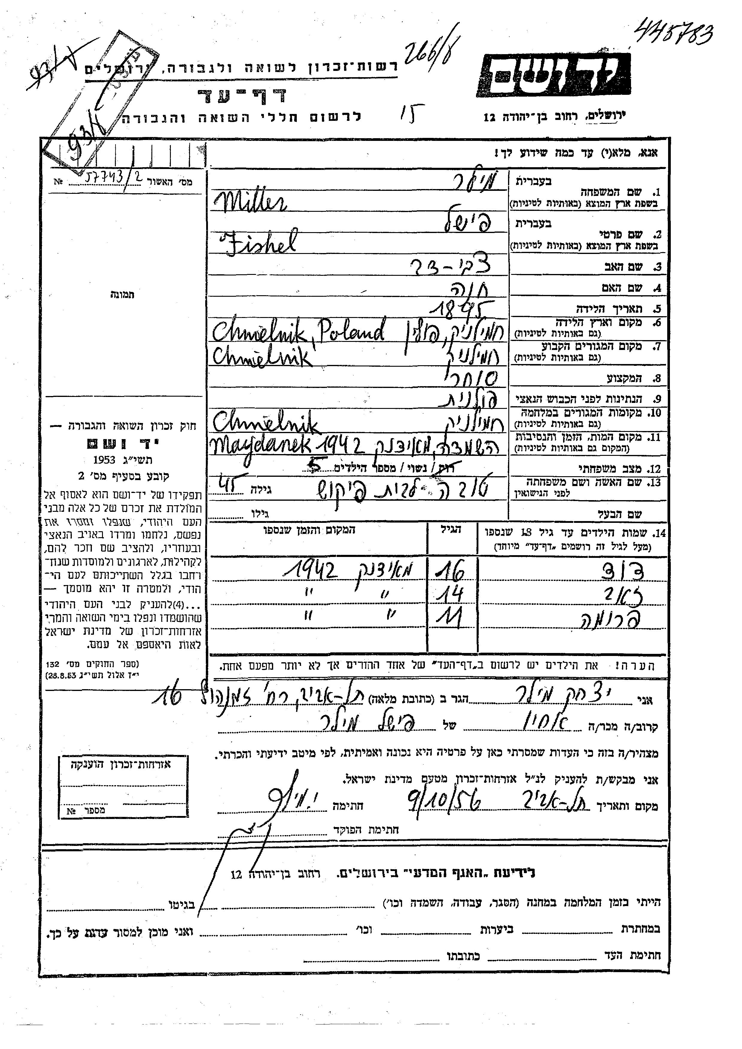 Yad Vashem - Pages of Testimony Names Memorial Collection