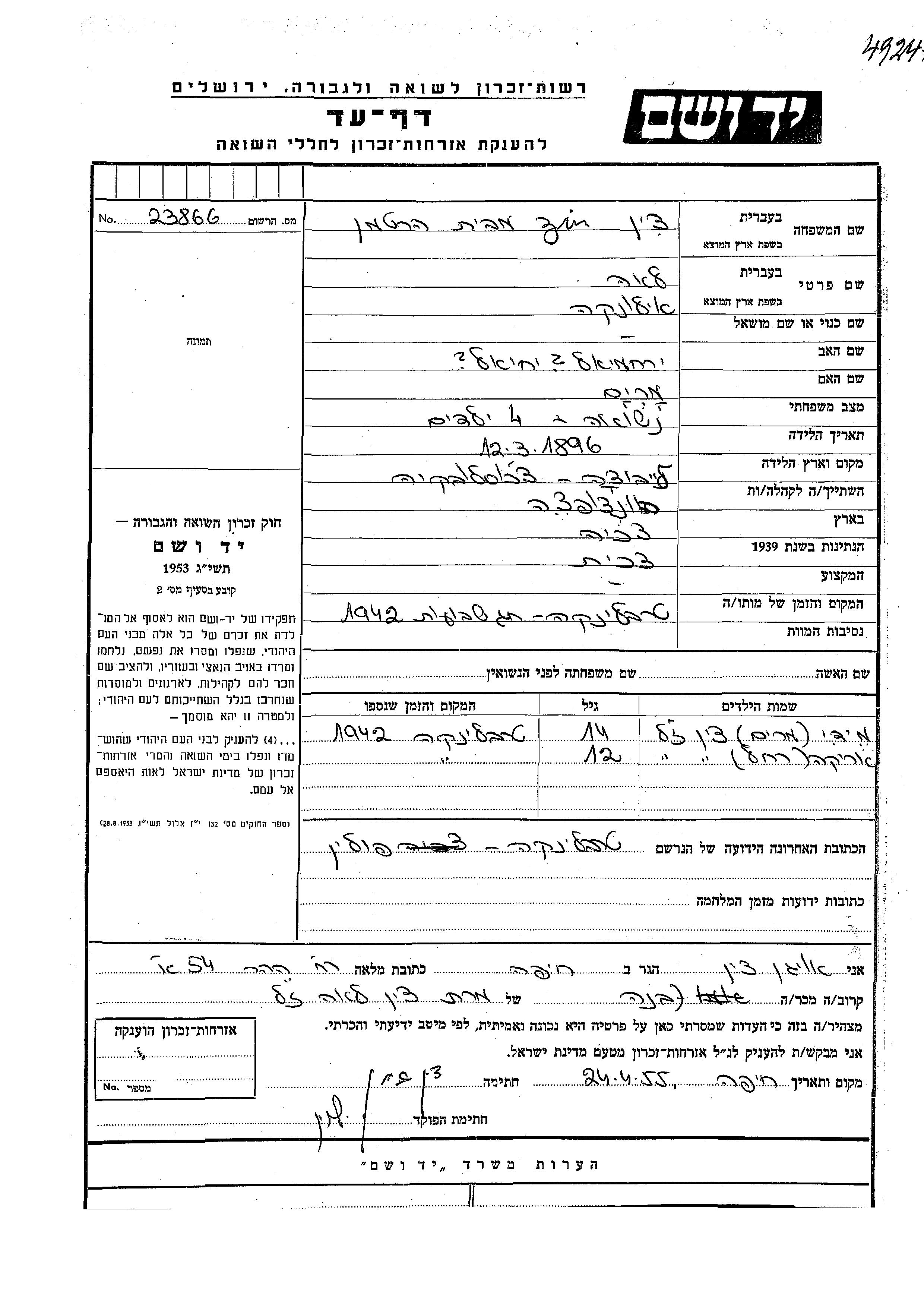Yad Vashem - Pages of Testimony Names Memorial Collection