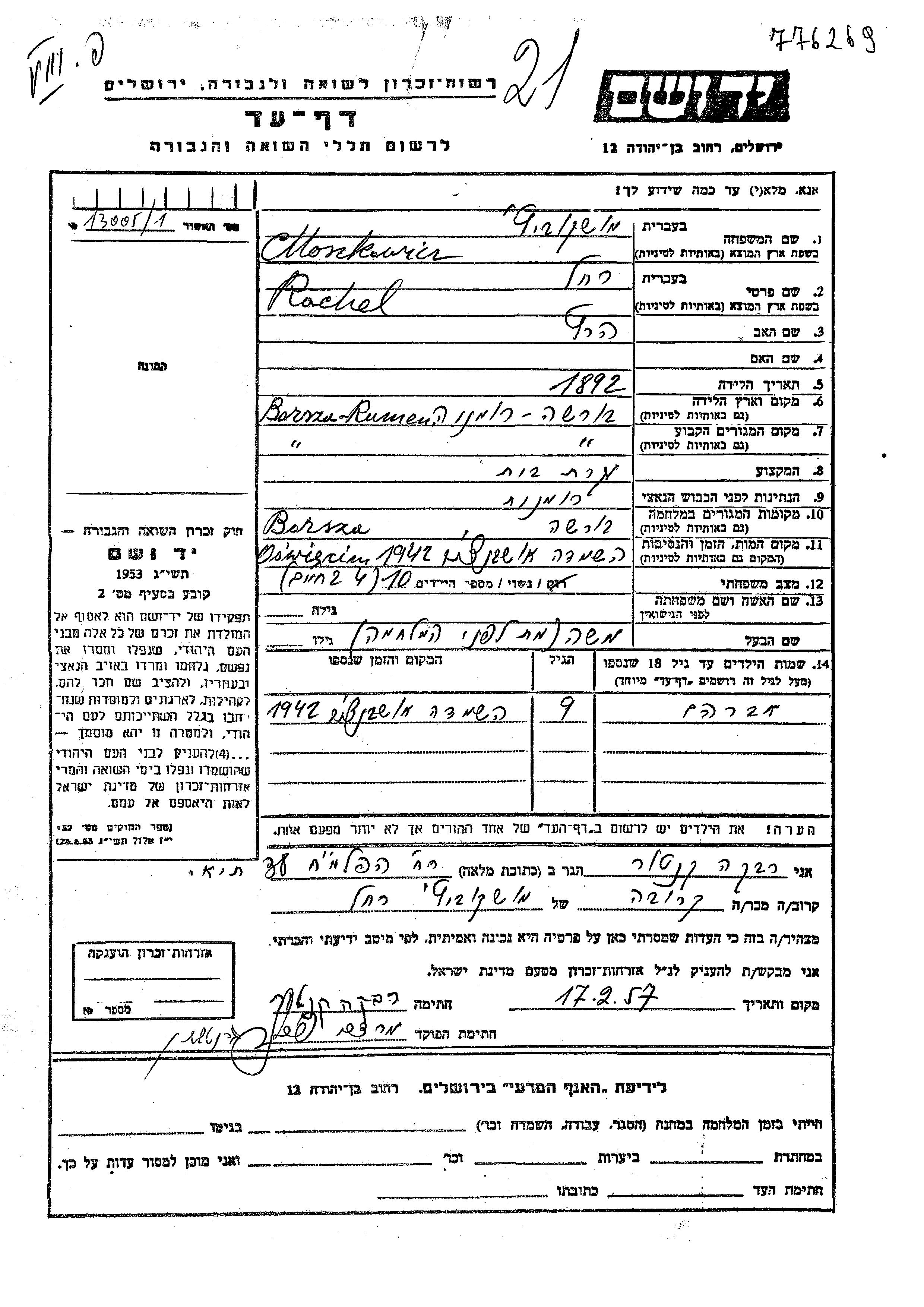 Yad Vashem - Pages of Testimony Names Memorial Collection