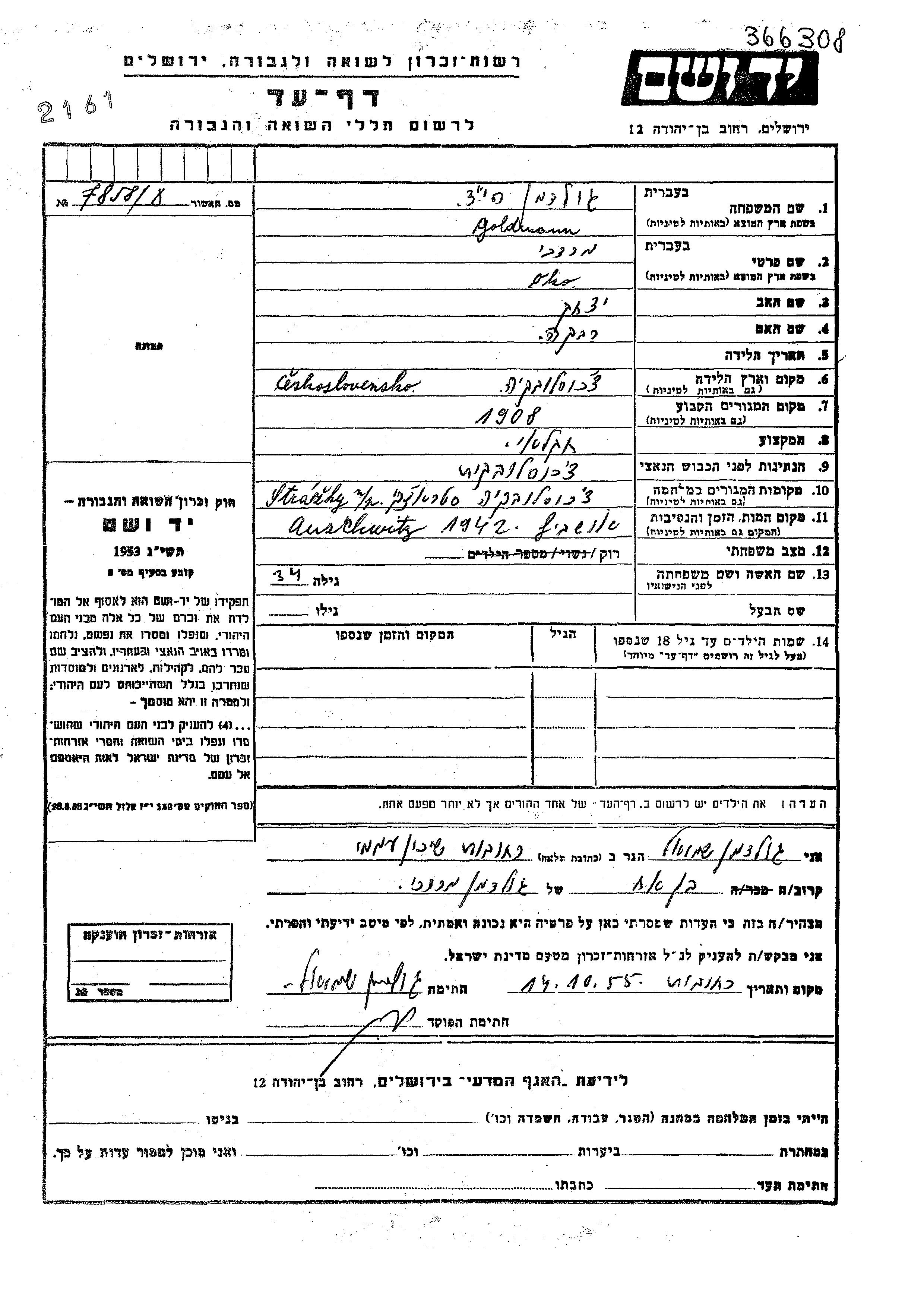 Goldmann Oko Mordekhai 1908 unstated place, Page of Testimony