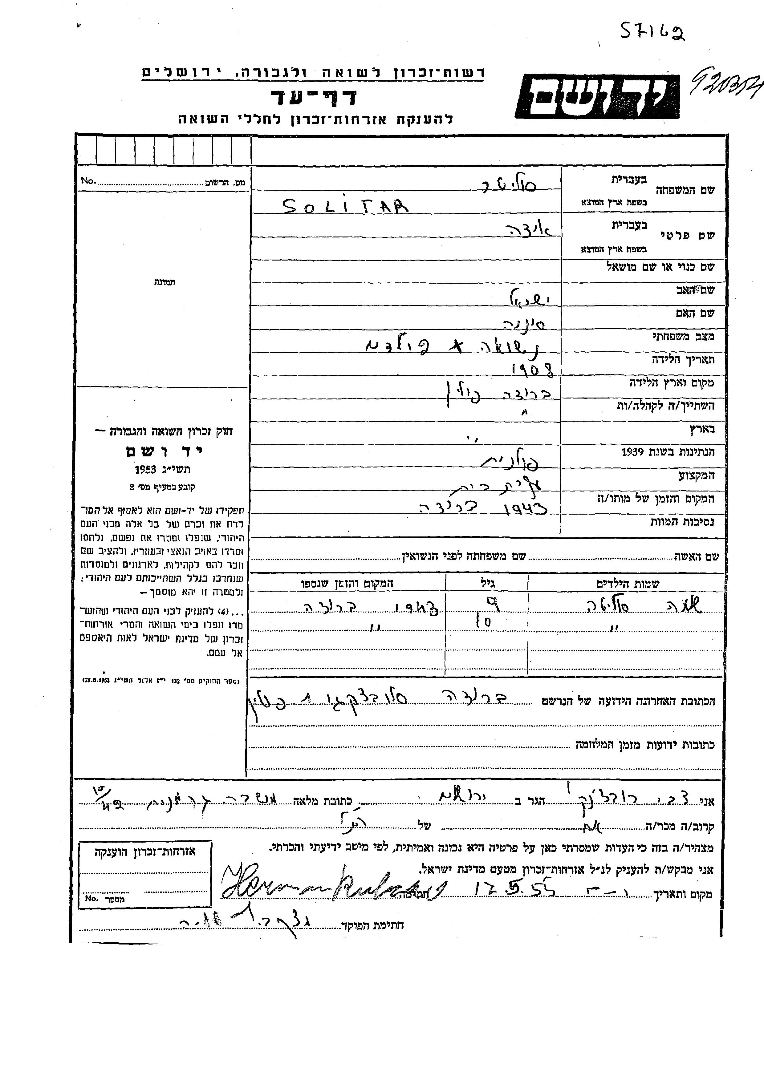 Solitar Shlomo Brodi, Poland Page of Testimony