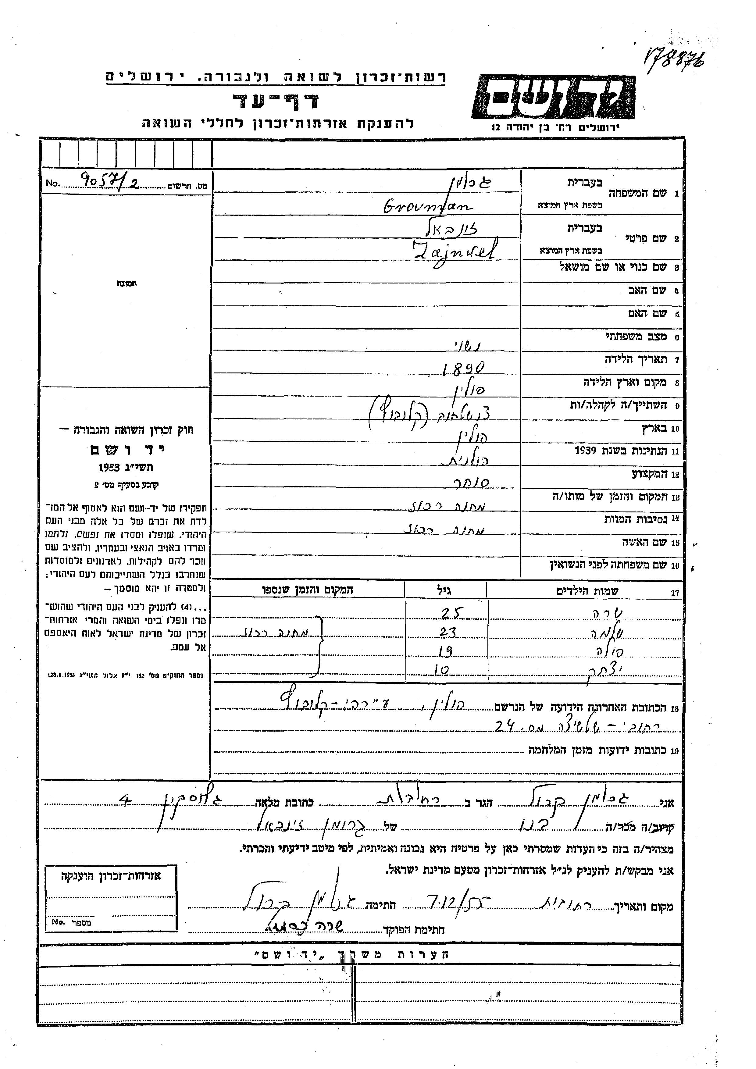Yad Vashem - Pages of Testimony Names Memorial Collection
