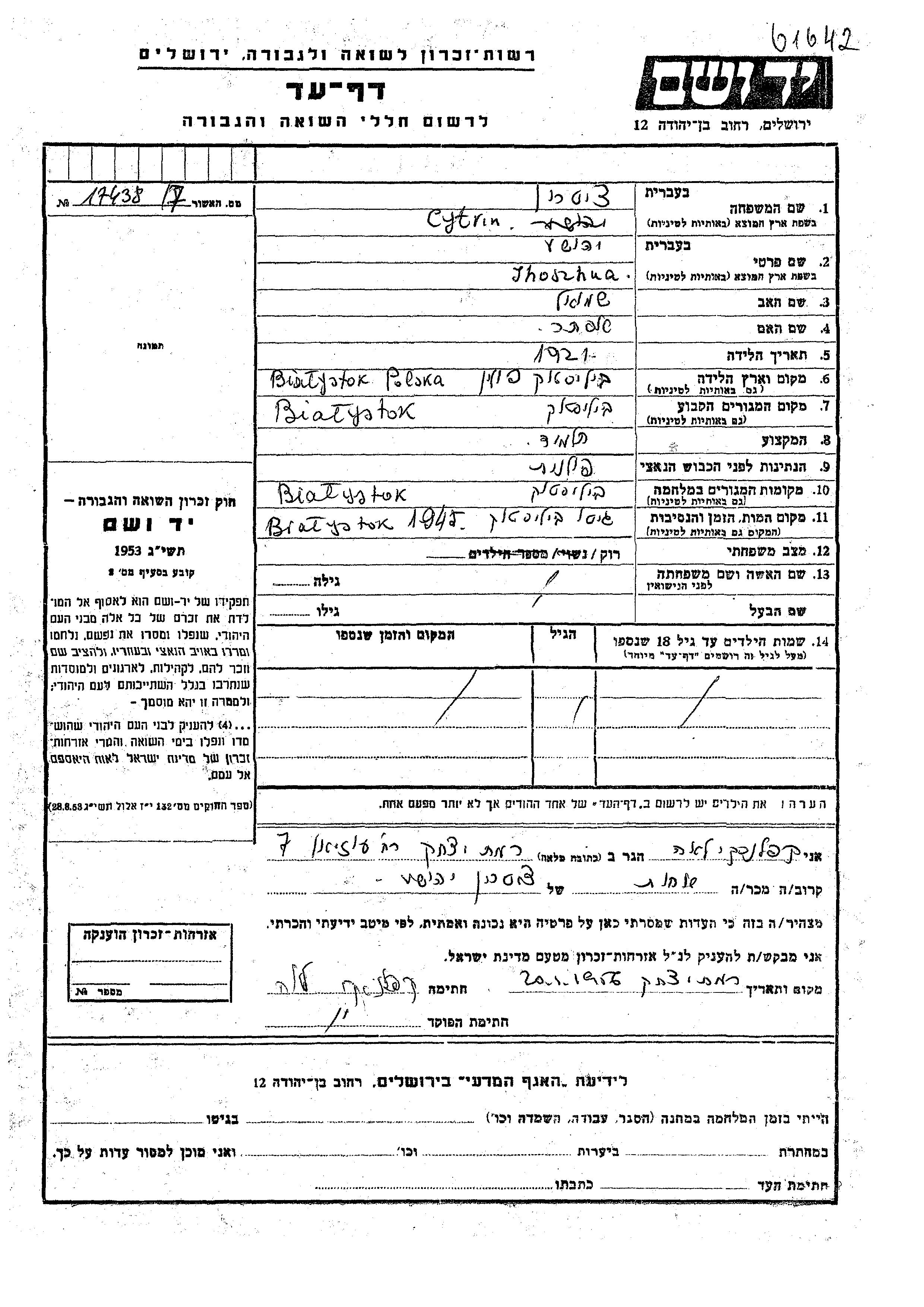 Search by last name of the submitter of the Page of Testimony, including diminutives or nicknames