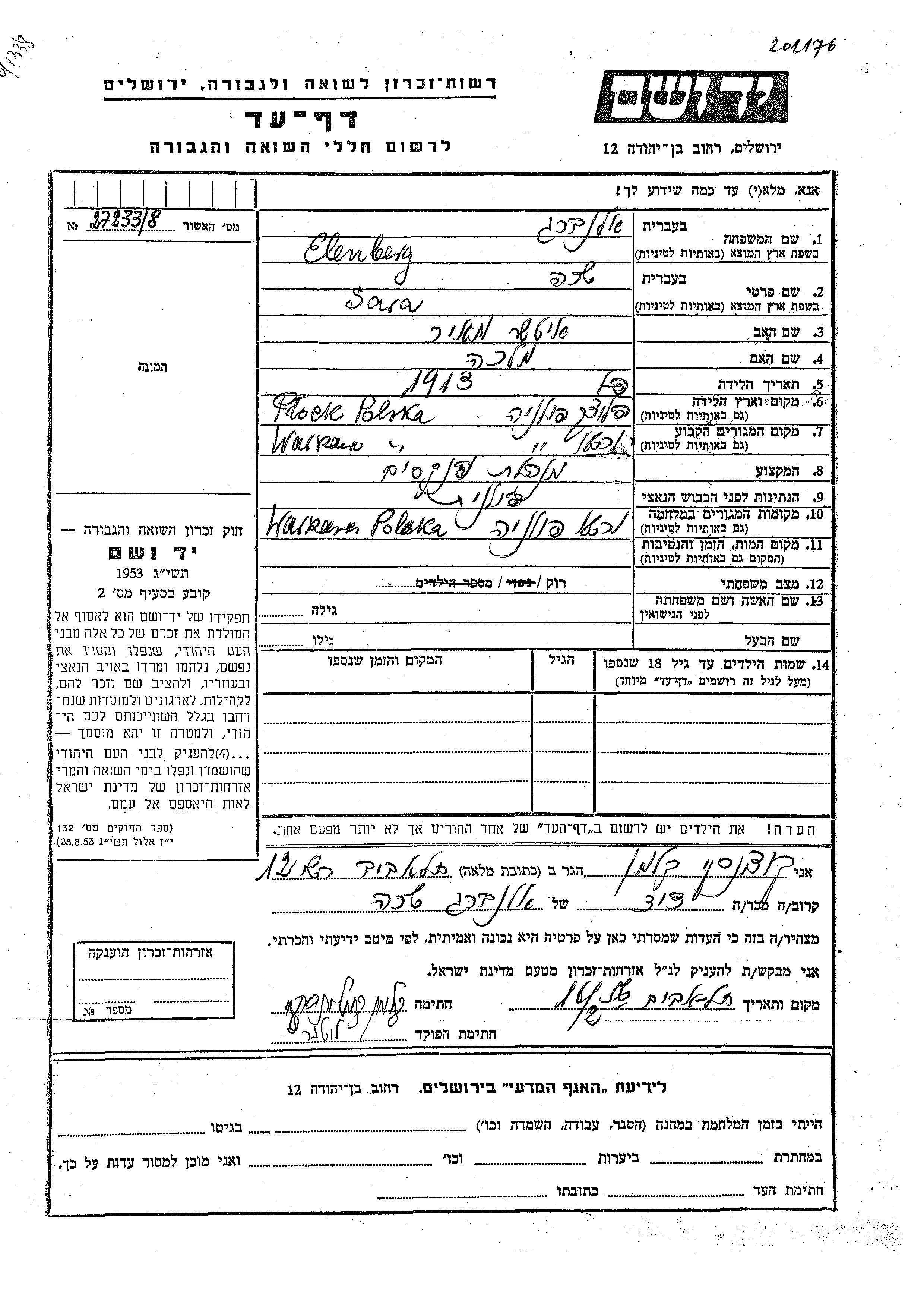 Elenberg Sara 1913 Warszawa, Poland Page of Testimony