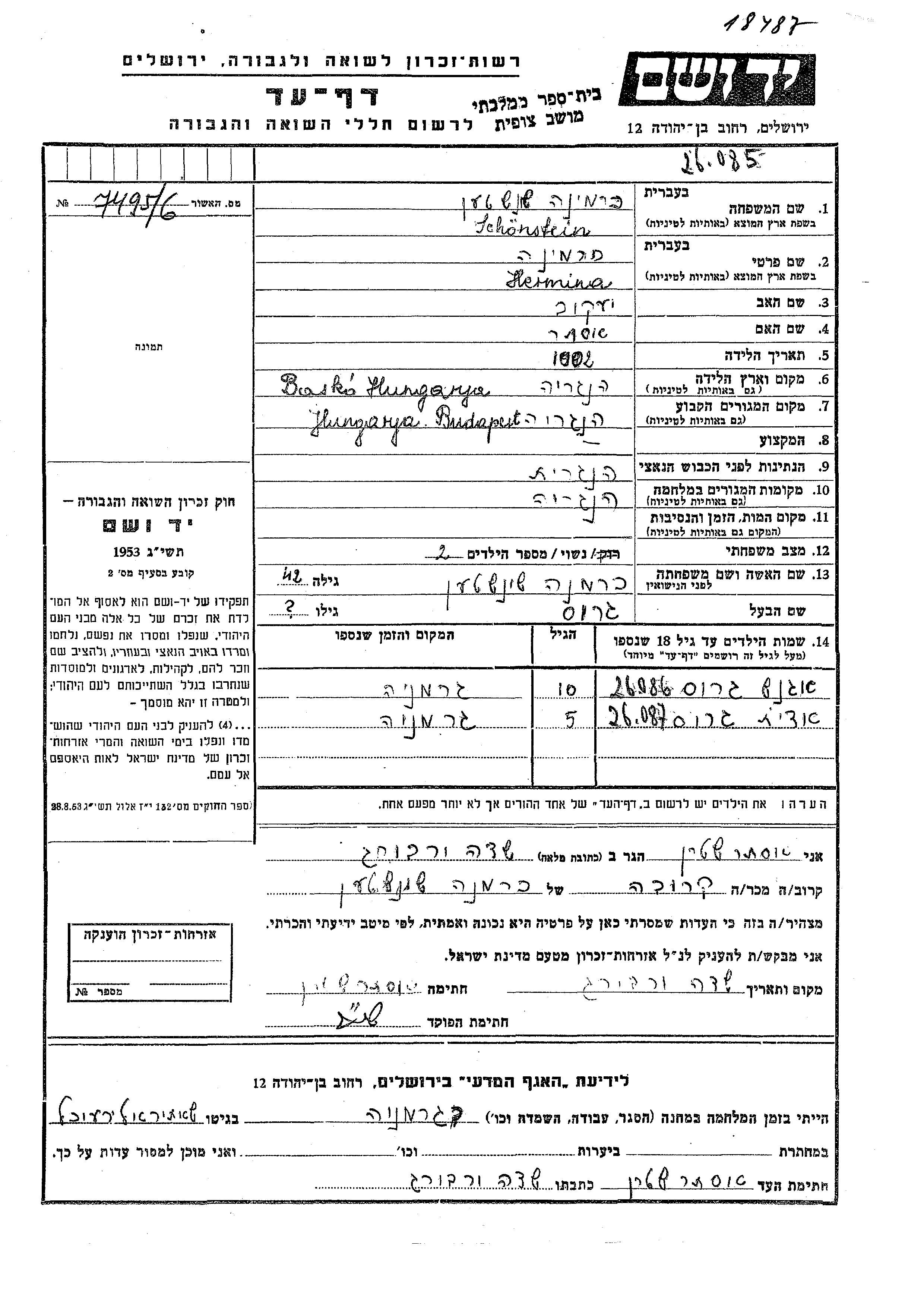 Yad Vashem - Pages of Testimony Names Memorial Collection