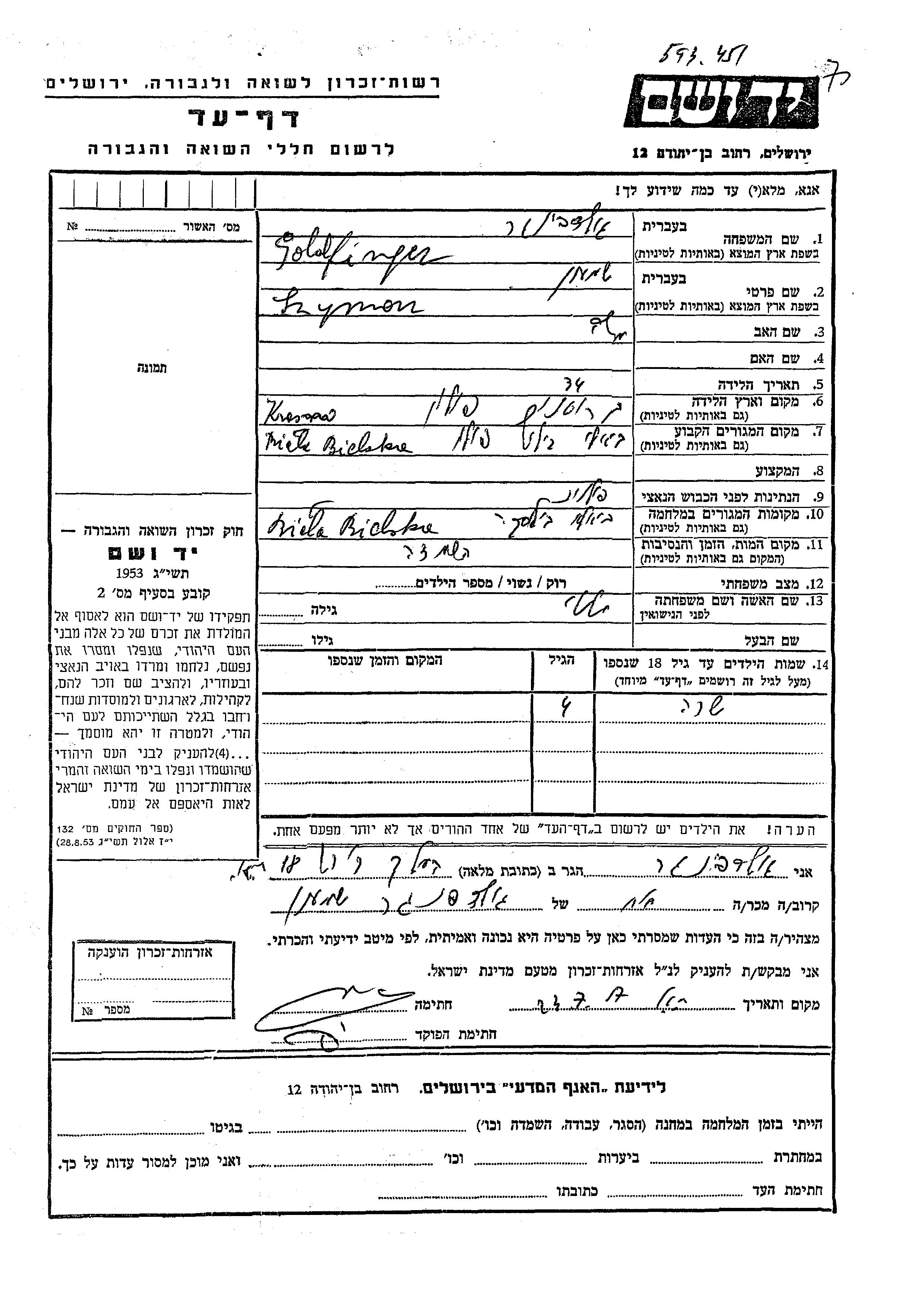 Yad Vashem - Pages of Testimony Names Memorial Collection