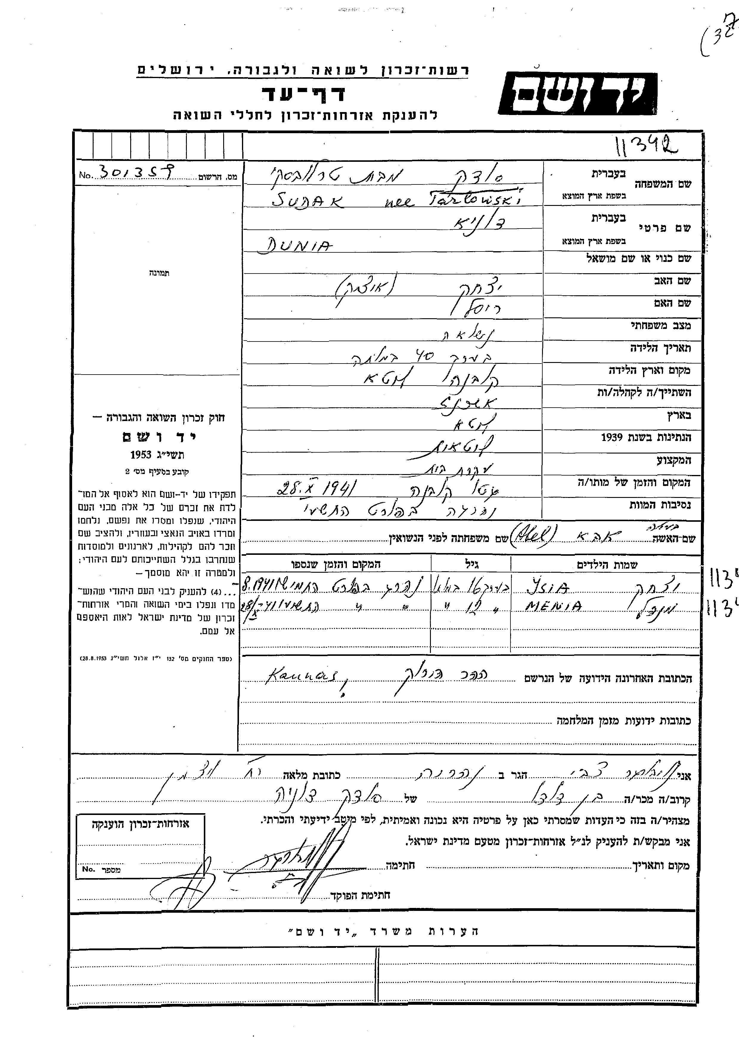 Sudak Ysia Kaunas, Lithuania Page of Testimony