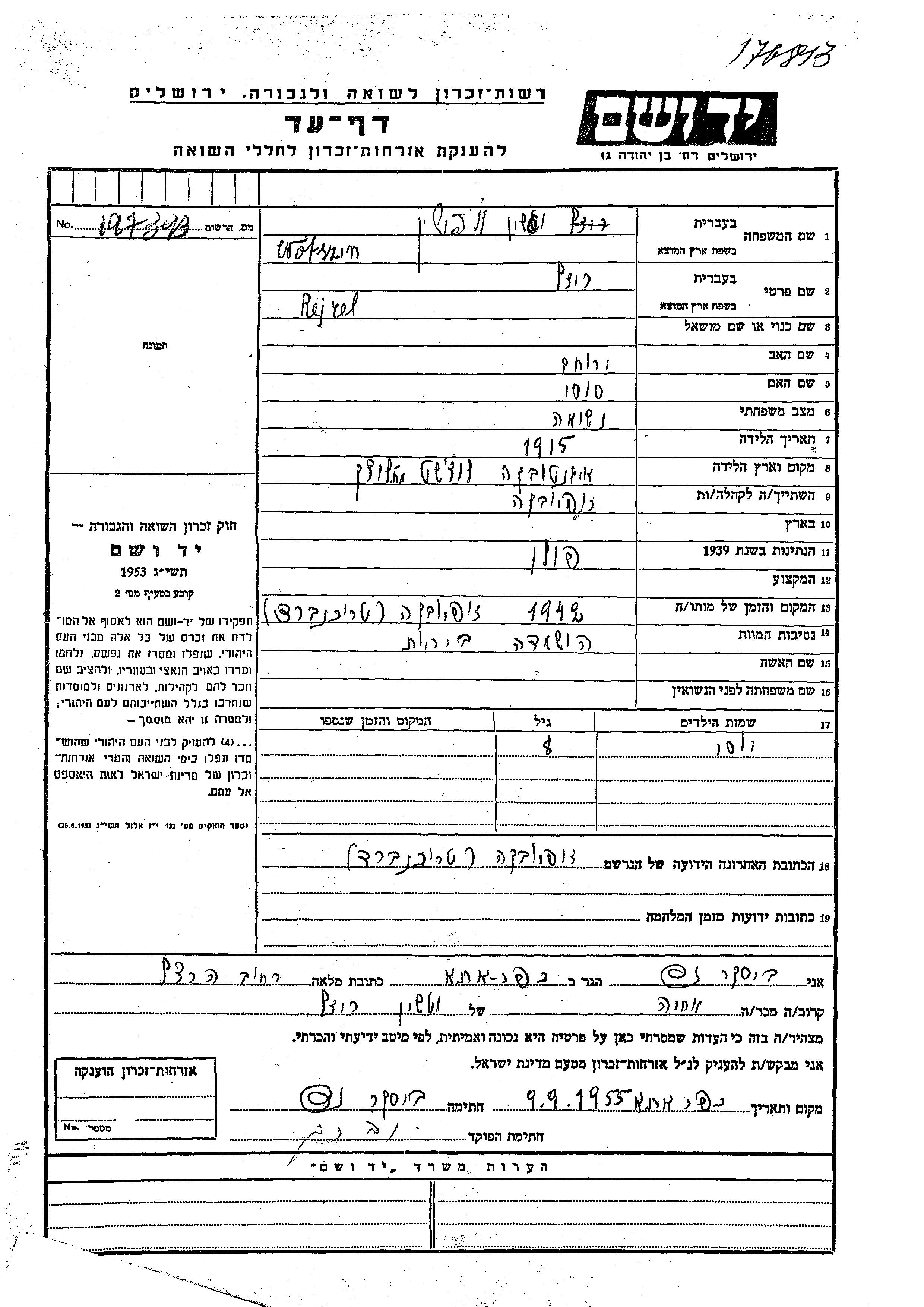 Yad Vashem - Pages of Testimony Names Memorial Collection