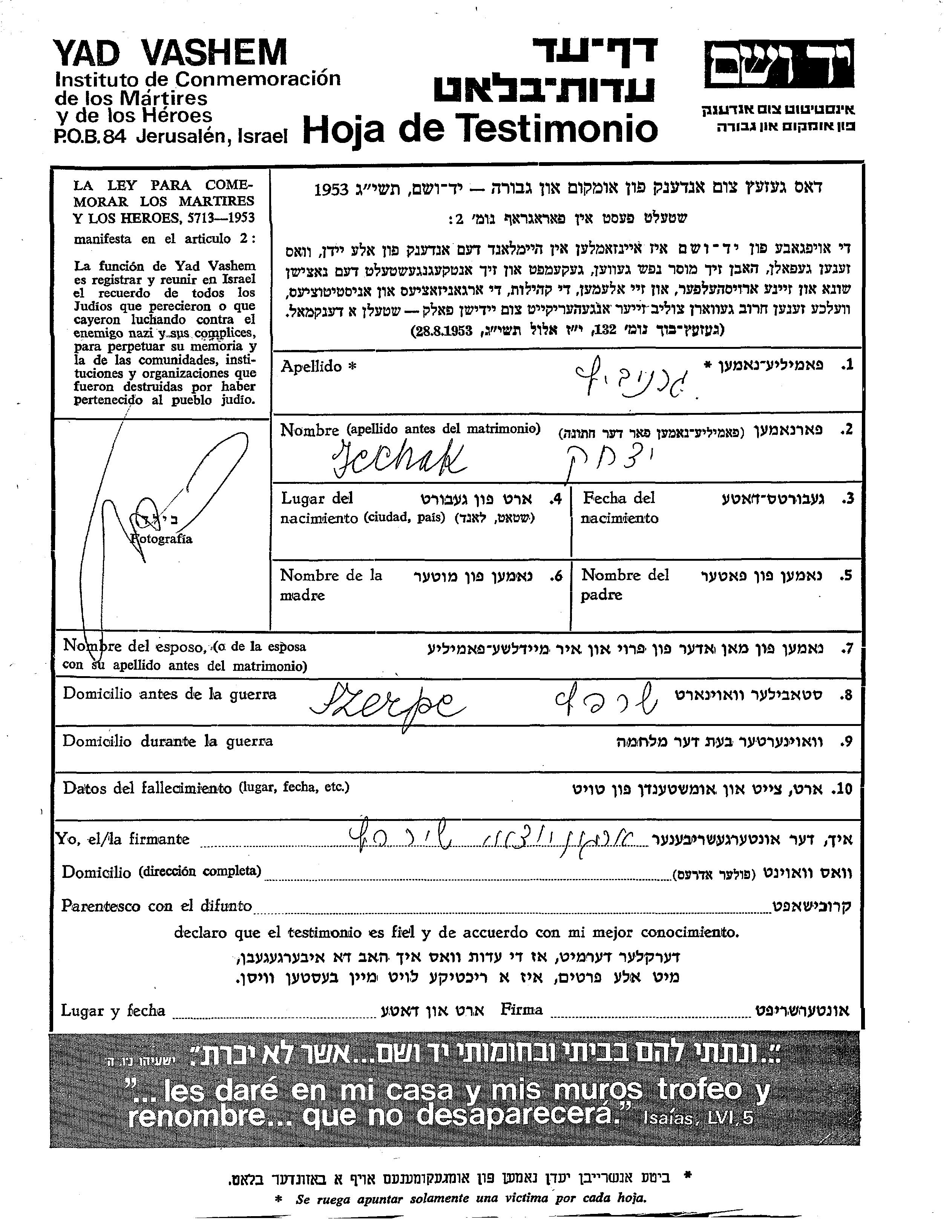 Yad Vashem - Pages of Testimony Names Memorial Collection