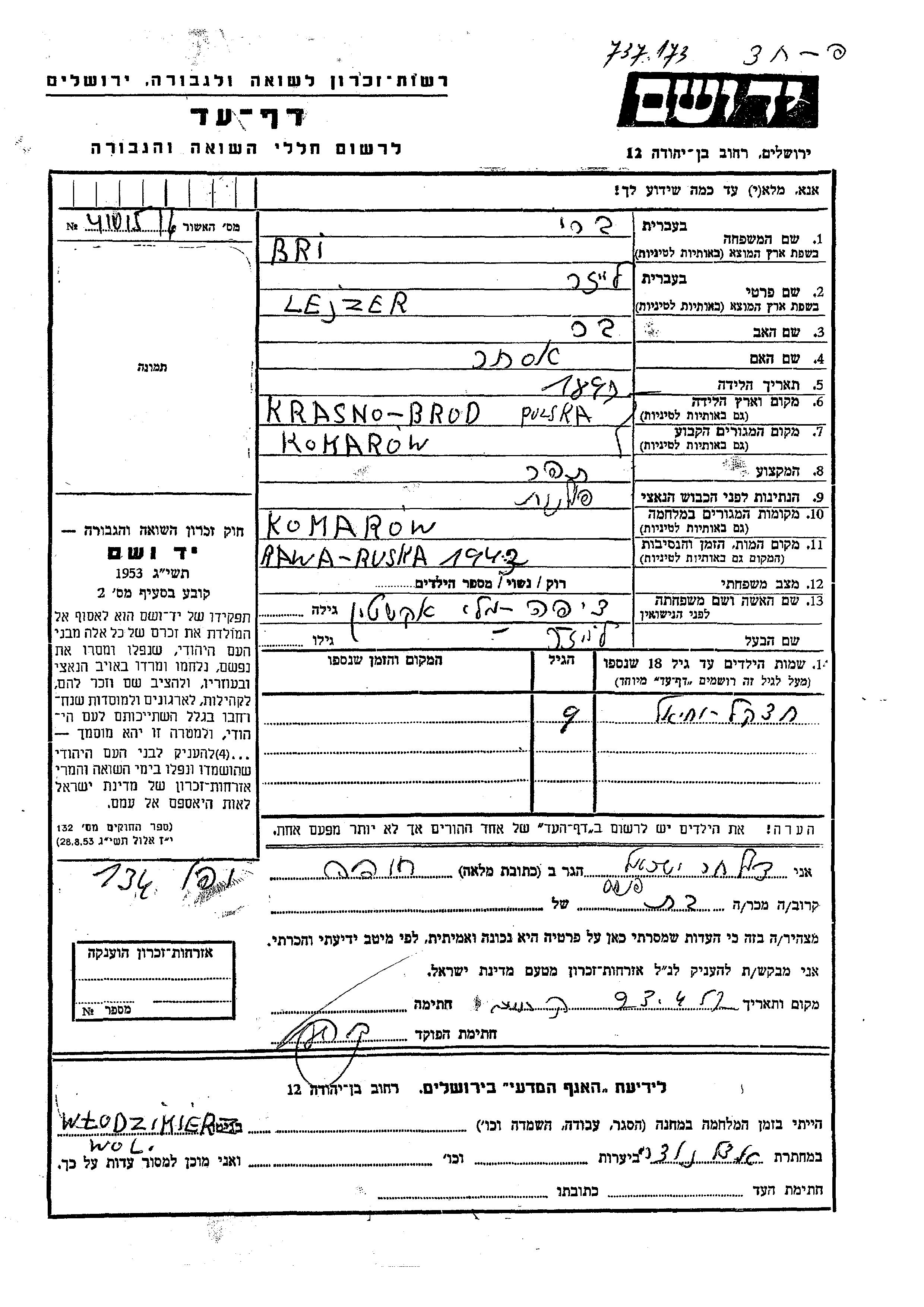 Bri Bari Khezkel Yekhiel Komarow, Poland Page of Testimony