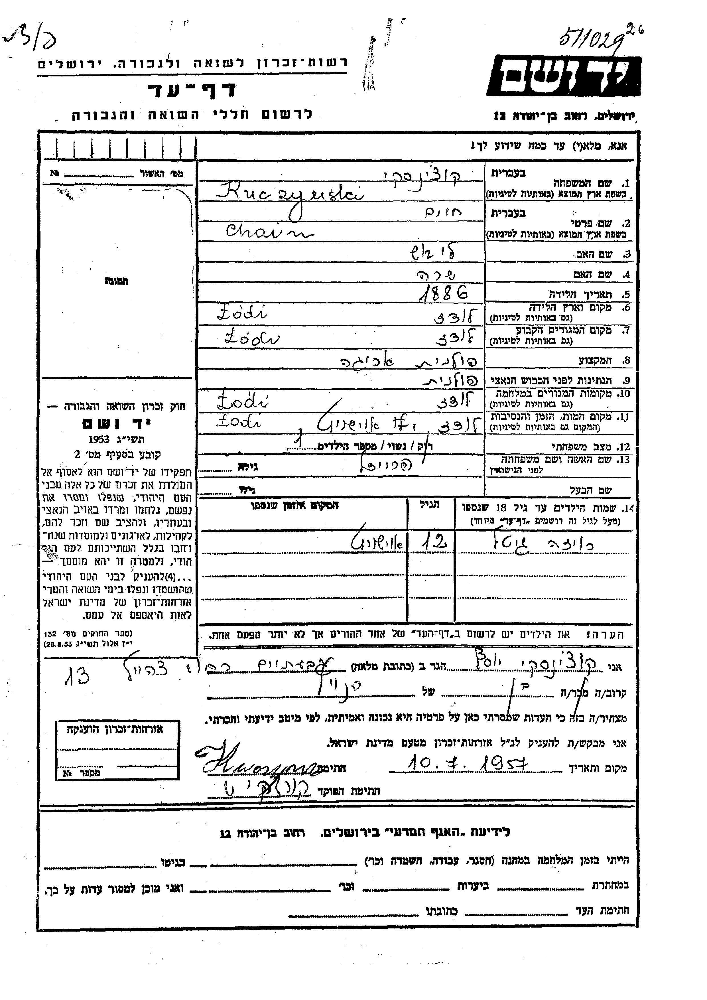 Roiza Gitel Kuczynski was born to Chaim and Freidel. She was child. Prior to WWII she lived in Lodz, Poland. During the war she was in Lodz, Poland.