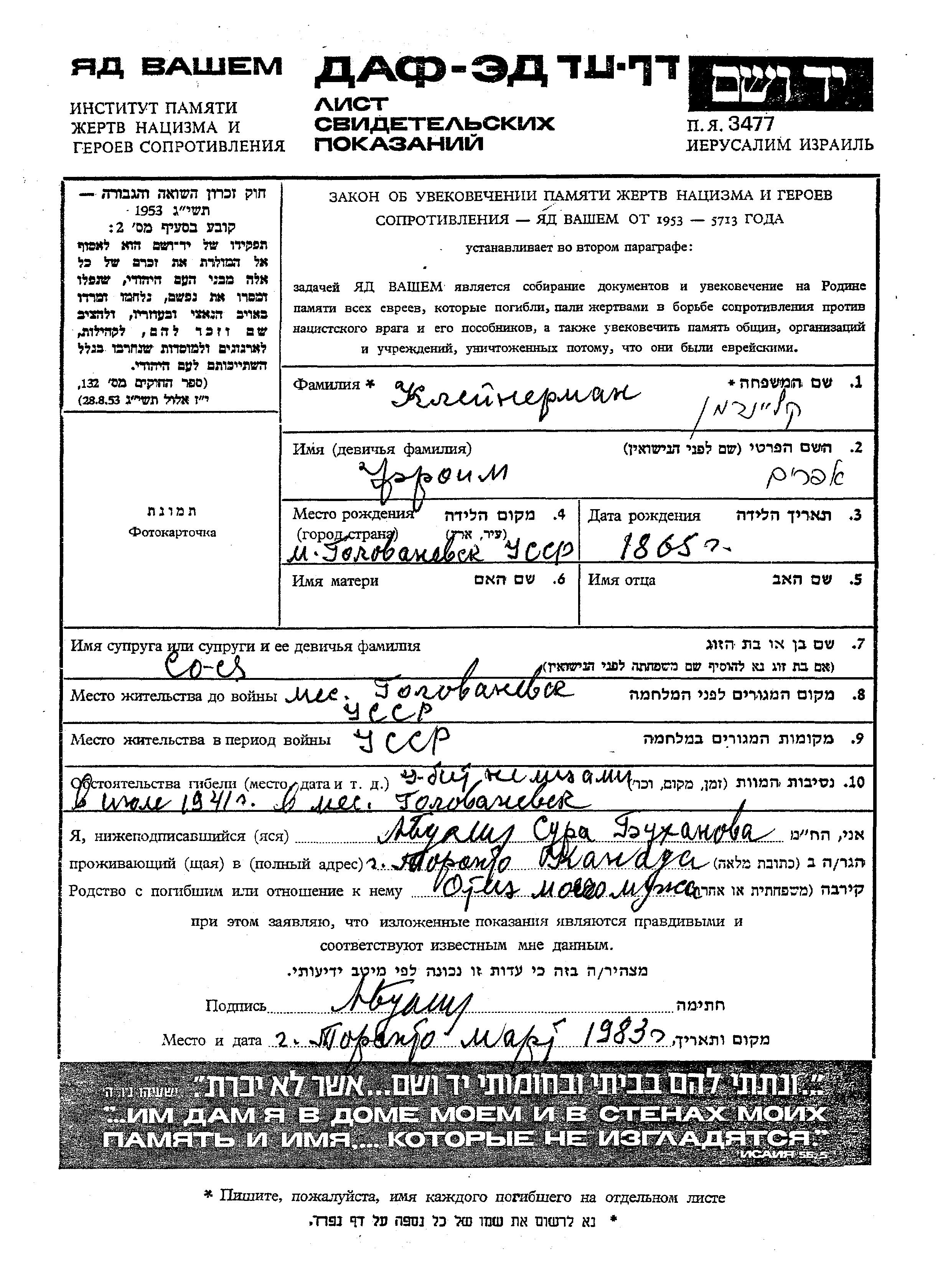 Yad Vashem - Pages of Testimony Names Memorial Collection
