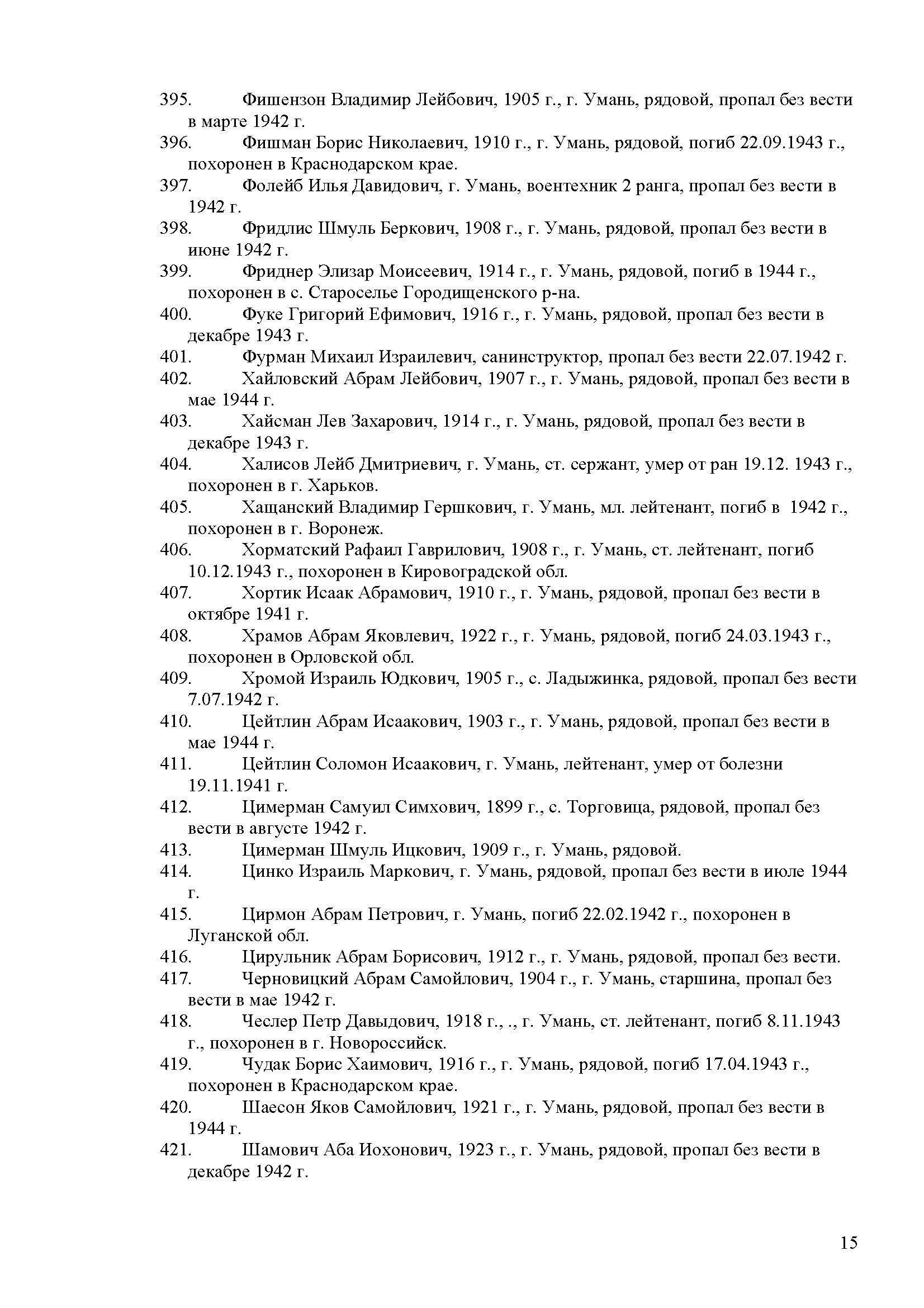 Private Izrail Khromoy was born in Ladyzhinka, Ukraine (USSR), 1905 to Yudko. Prior to WWII he lived in Ladyzhinka, Ukraine (USSR). During the war he was in the Soviet armed forces. Private Khromoy was murdered in the Shoah.