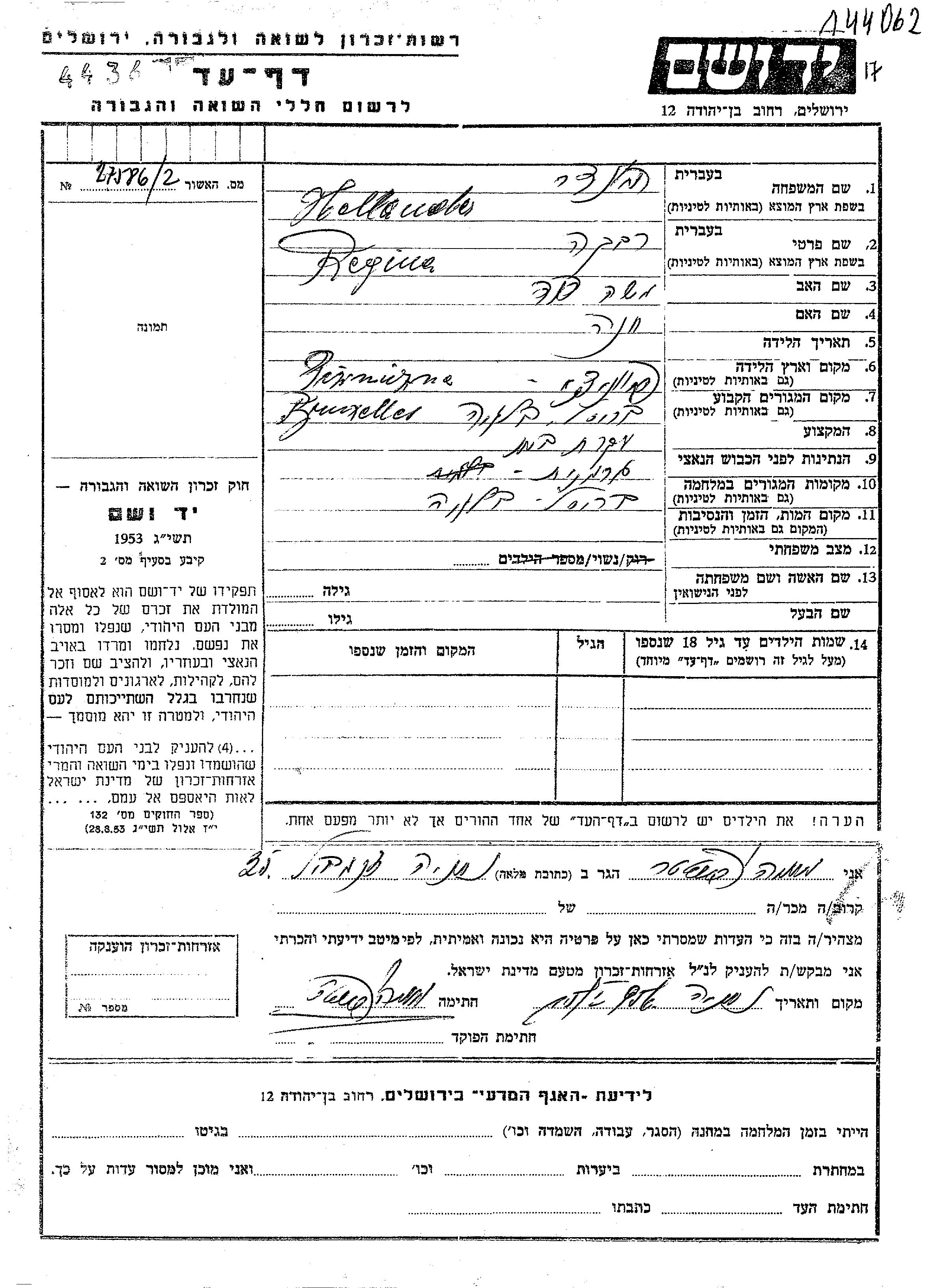 Yad Vashem - Pages of Testimony Names Memorial Collection